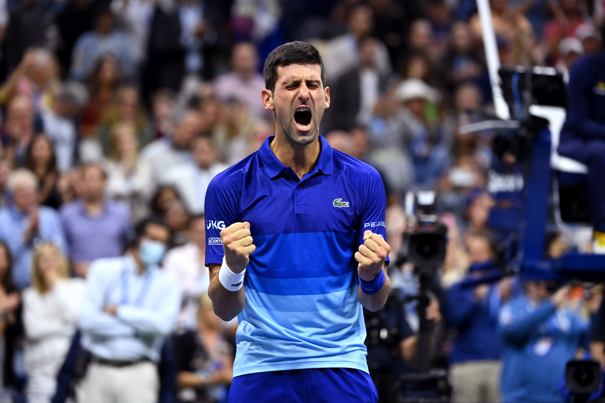 Novak Djokovic celebrates his win during a Men's Singles semifinal match at the 2021 US Open, Friday, Sep. 10, 2021 in Flushing, NY. (Garrett Ellwood/USTA)