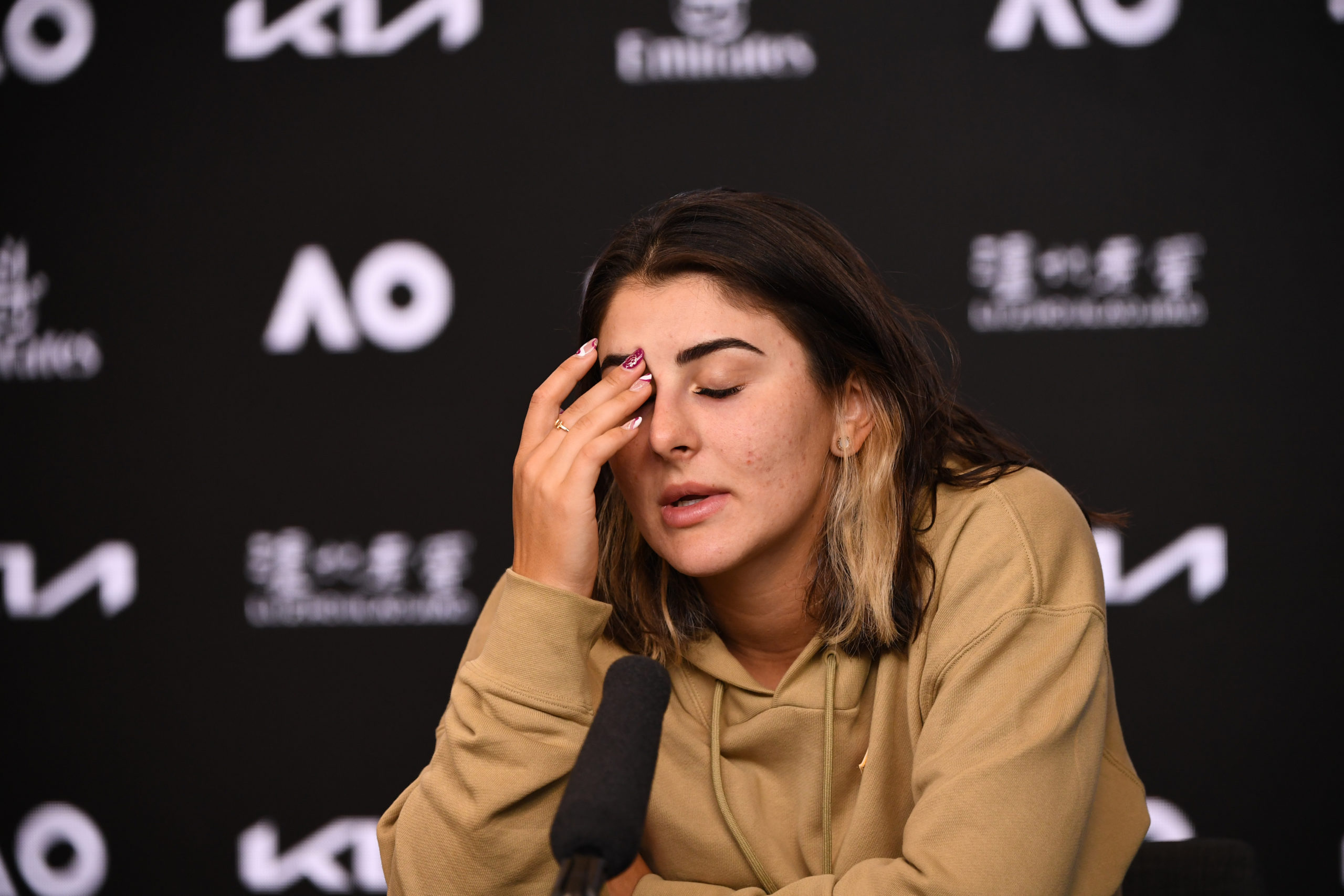 Bianca ANDREESCU (CAN) is seen at her press conference after her loss to Su-wei HSIEH (TPE) during Day 3 of the Australian Open at Melbourne Park on Wednesday, February 10, 2021. MANDATORY PHOTO CREDIT Tennis Australia/ VINCE CALIGIURI