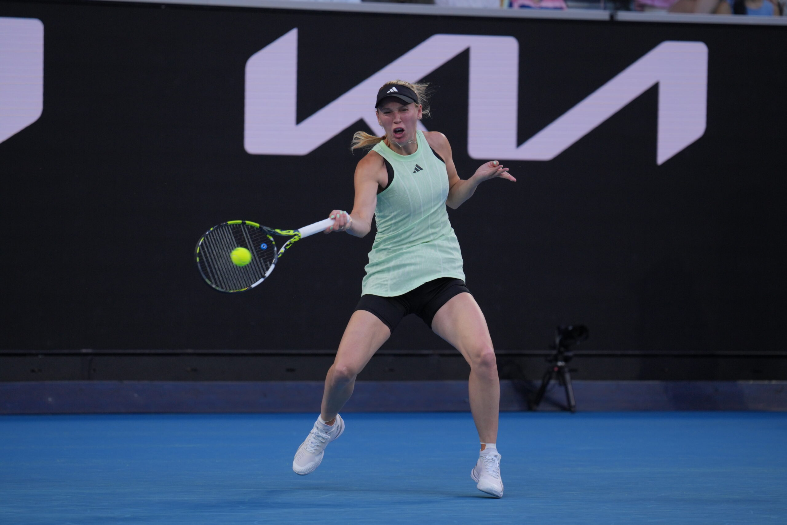 The outsider was making her Grand Slam debut as she faced the 2018 Melbourne champion who retired in 2020 but returned to the sport last August as a mother of two.