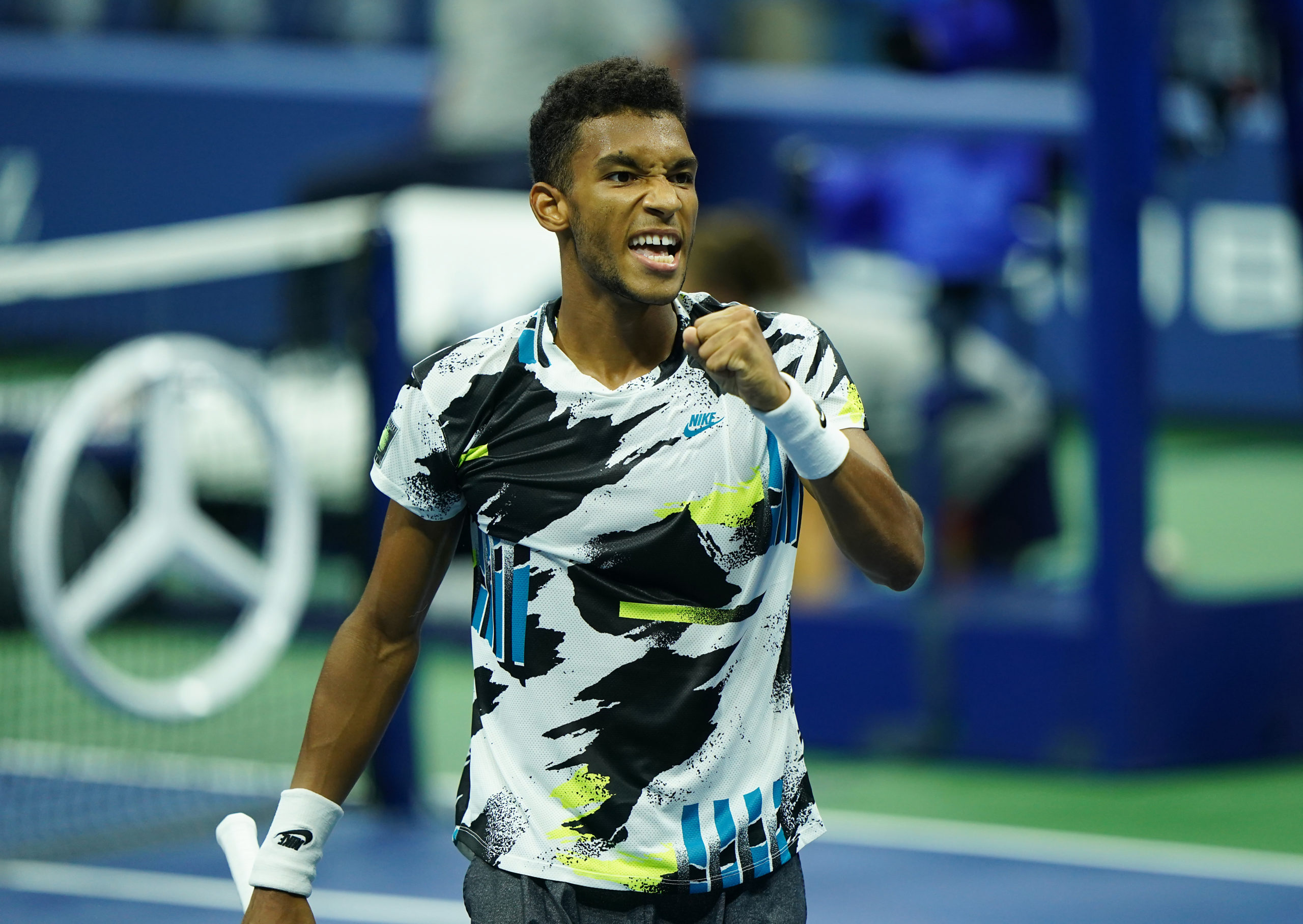 September 3, 2020 - Felix Auger-Aliassime reacts after winning against Andy Murray during a men's singles match at the 2020 US Open. (Photo by Darren Carroll/USTA)