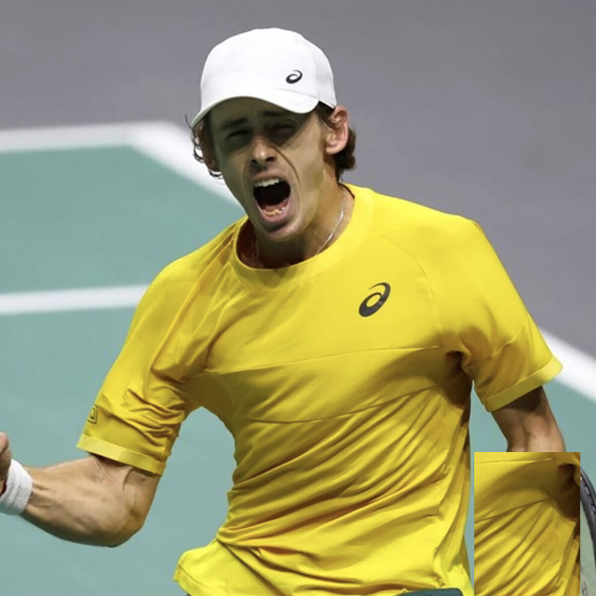 Main photo:- Alex de Minaur celebrates victory – by ITF/Davis Cup