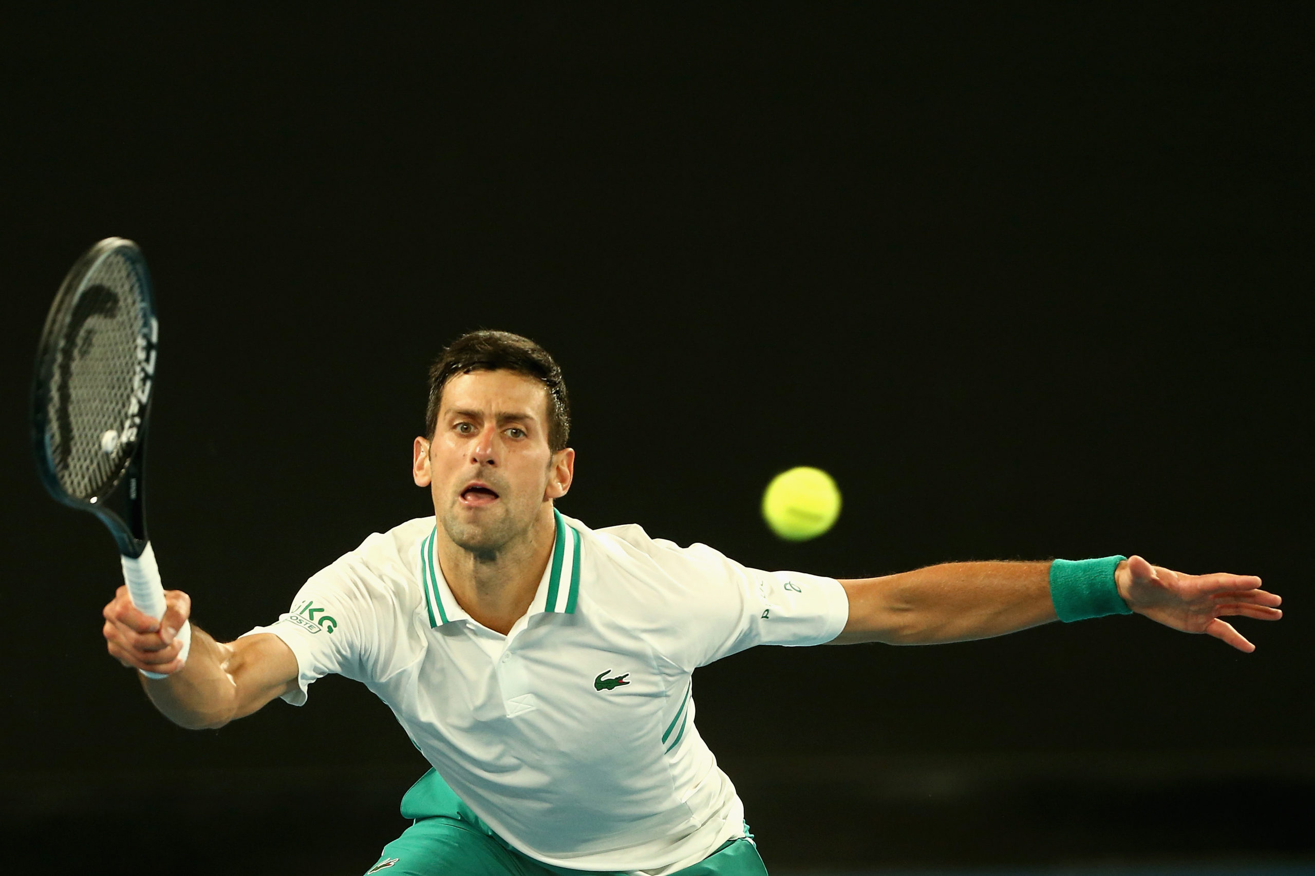 Novak DJOKOVIC (SRB) plays Daniil MEDVEDEV (RUS) during the Mens Final on Rod Laver Arena on Day 14 of the Australian Open at Melbourne Park on Sunday, February 21, 2021. MANDATORY PHOTO CREDIT Tennis Australia/ ROB PREZIOSO