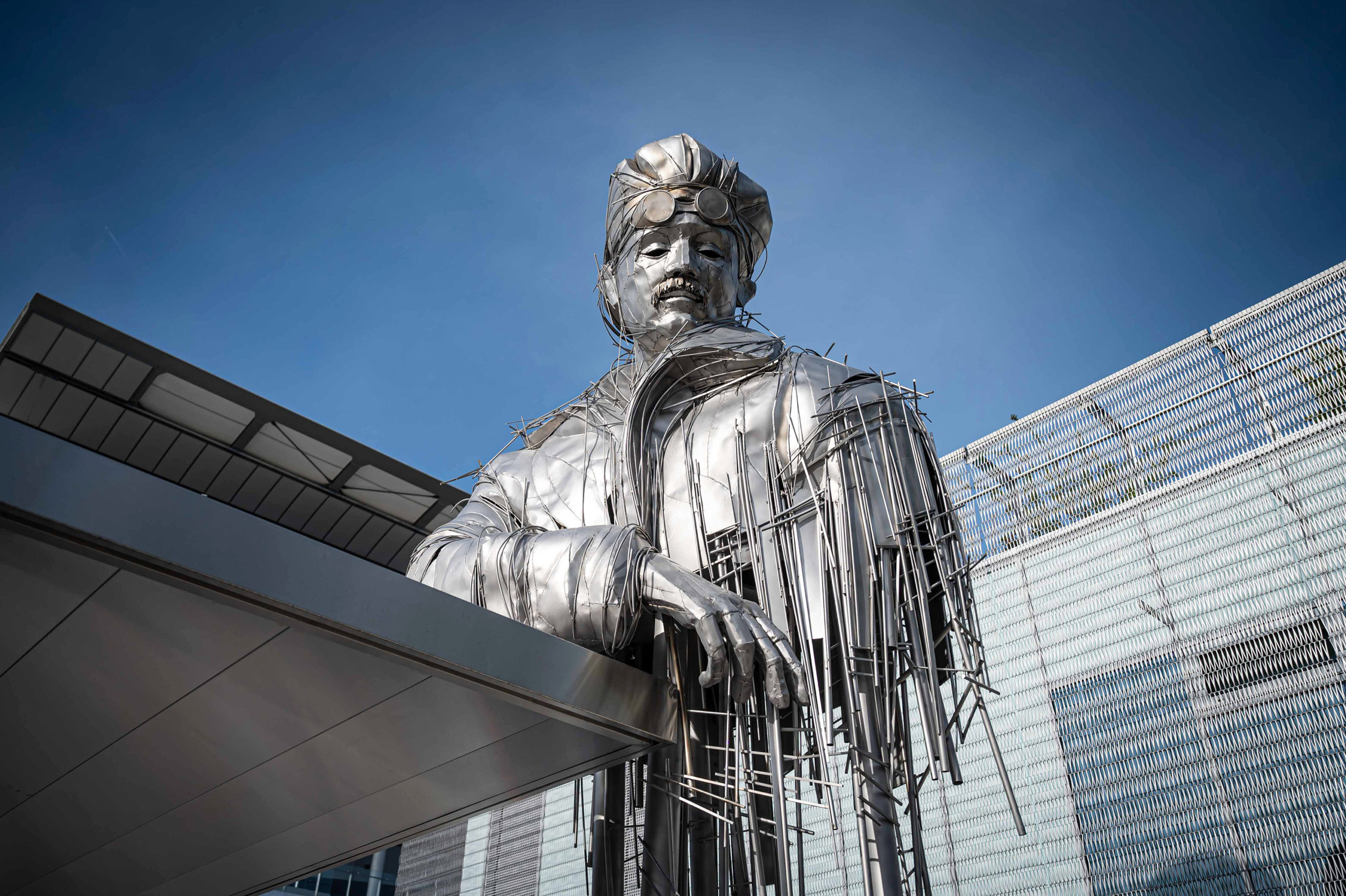 As part of the stadium complex’s ongoing refurbishment, a statue of the aviator Roland Garros was erected in the presence of Gilles Moretton, the president of the French Tennis Federation (FFT), and Caroline Brisset, the artist who created the sculpture.