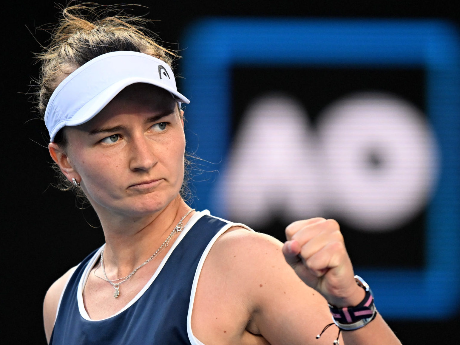 Barbora KREJCIKOVA (CZE) reacts during Round 2 of the Australian Open on Margaret Court Arena at Melbourne Park in Melbourne on Wednesday, January 19, 2022. MANDATORY PHOTO CREDIT Morgan Hancock/TENNIS AUSTRALIA