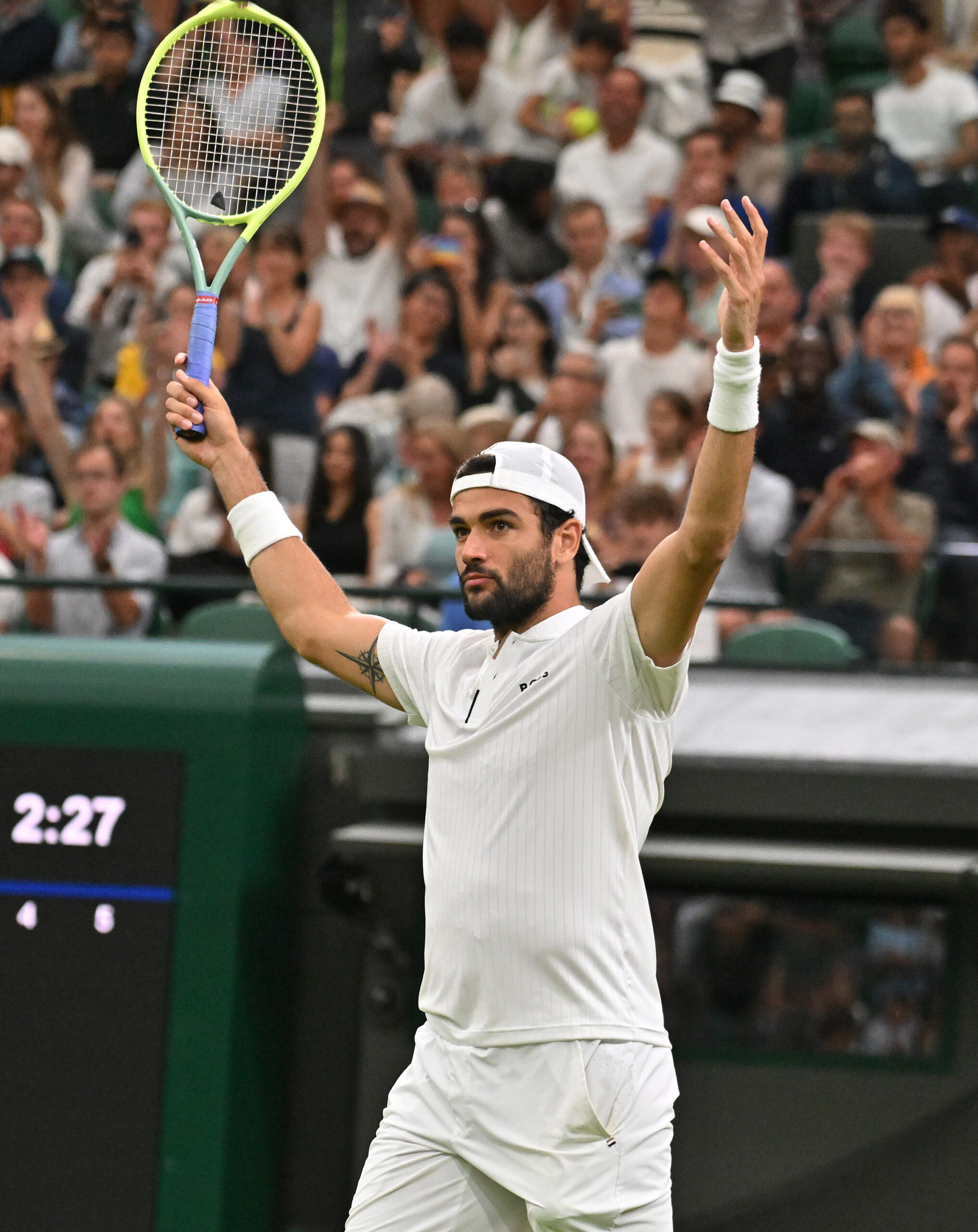 London Wimbledon Championships Day 6 08/07/2023 Matteo Berrettini (ITA) celebrates as he wins wins third round match Photo Roger Parker International Sports Fotos Ltd