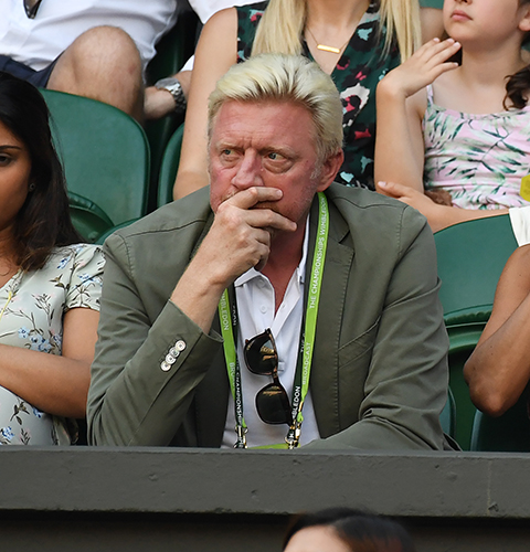 London,England The Championships Wimbledon Day 6 07/07/2018 Boris Becker and wife Lily watch Novak Djokovic v Kyle Edmund match on centre court. Photo Roger Parker International Sports Fotos Ltd
