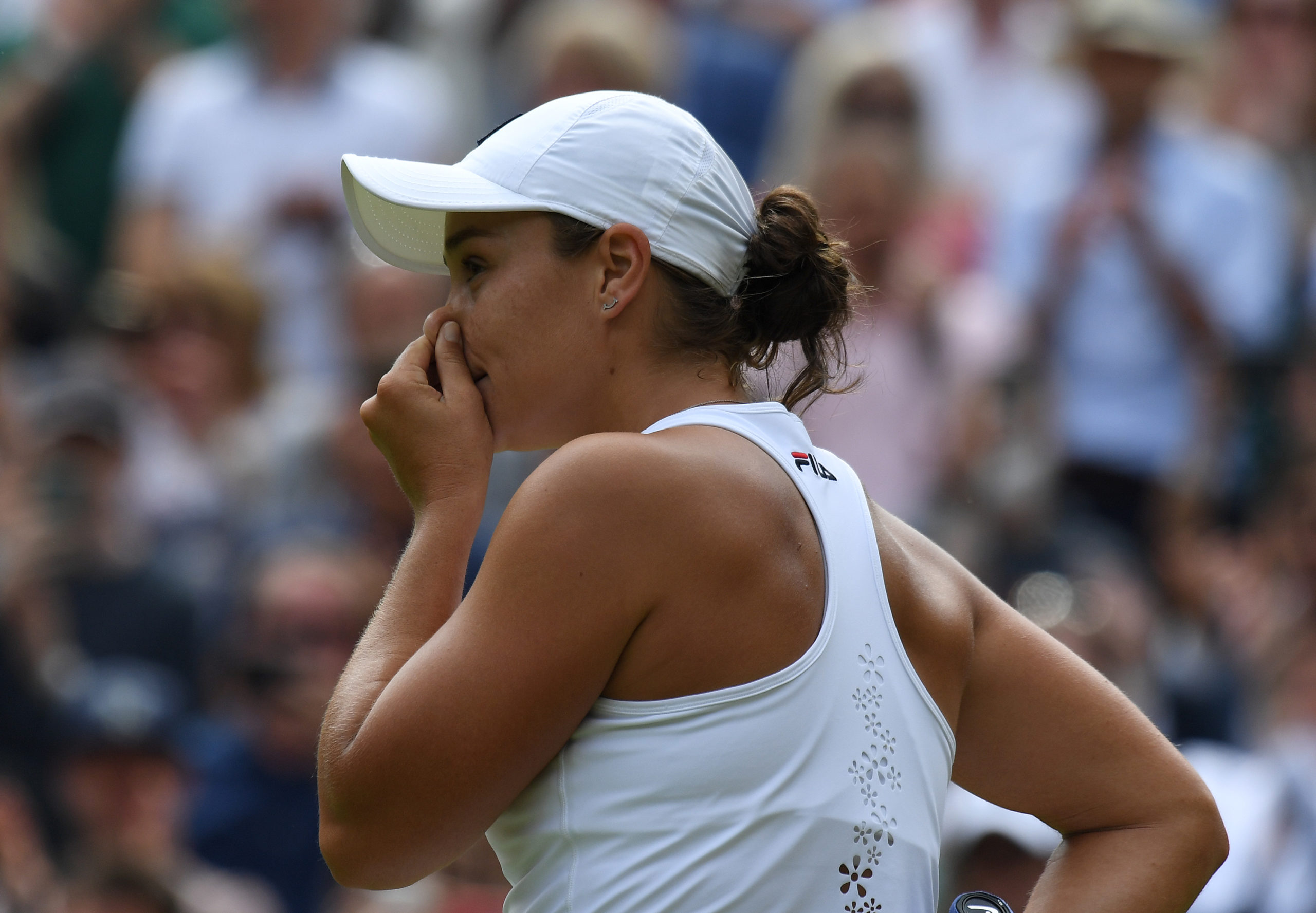 London Wimbledon Championships Day 10 08/07/2021 Ashleigh Barty (AUS)in semifinal match against Angelique Kerber (GER) Roger Parker International Sports Fotos Ltd