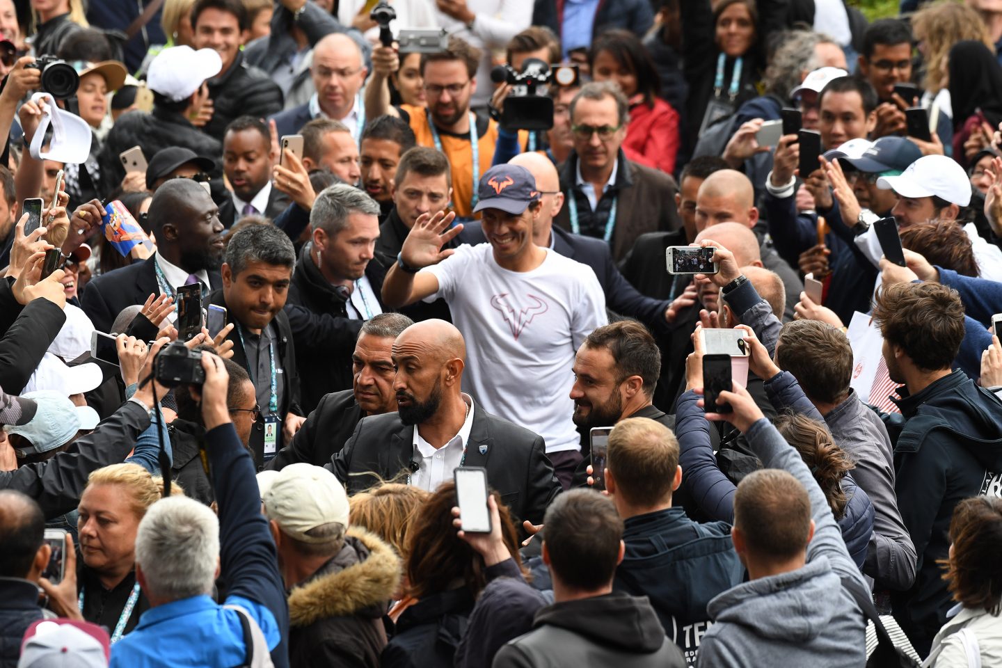 Rafael Nadal (ESP) surrounded by adoring fans after press conference following semifinal victory Photo Roger Parker International Sports Fotos Ltd