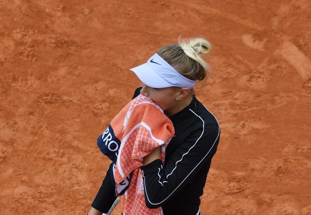 The 28-year-old, who had never won a round at Roland Garros before this year, had three set points when she led 5-3 in the opener, but on first lashed an easy volley well over the baseline with the court at her mercy.