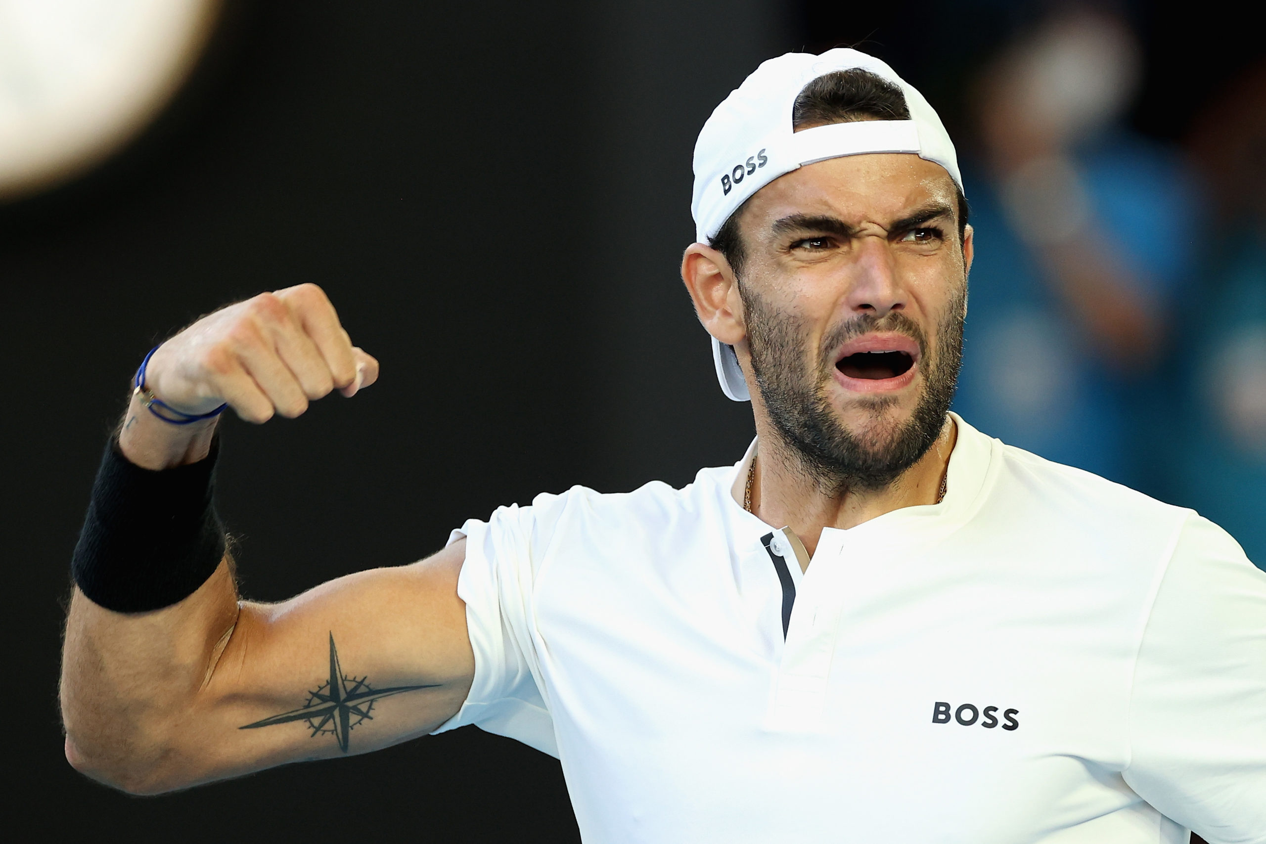 Matteo BERRETTINI (ITA) celebrates a win during Round 3 of the Australian Open on Rod Laver Arena at Melbourne Park in Melbourne on Friday, January 21, 2022. MANDATORY PHOTO CREDIT Rob Prezioso/TENNIS AUSTRALIA