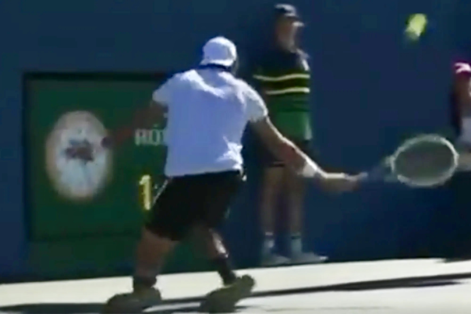 He was surrounded by ballkids forming a protective shield with umbrellas as medics tried to comfort him, but he was is agony and could be heard mumbling, “oh no”.