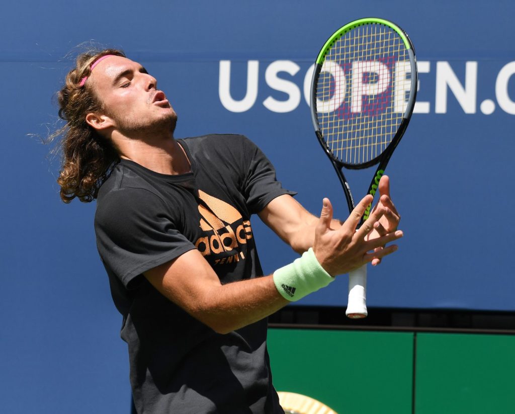 Stefanos Tsitsipas practices on Louis Armstrong Court. Photo: Roger Parker International Sports Fotos Ltd