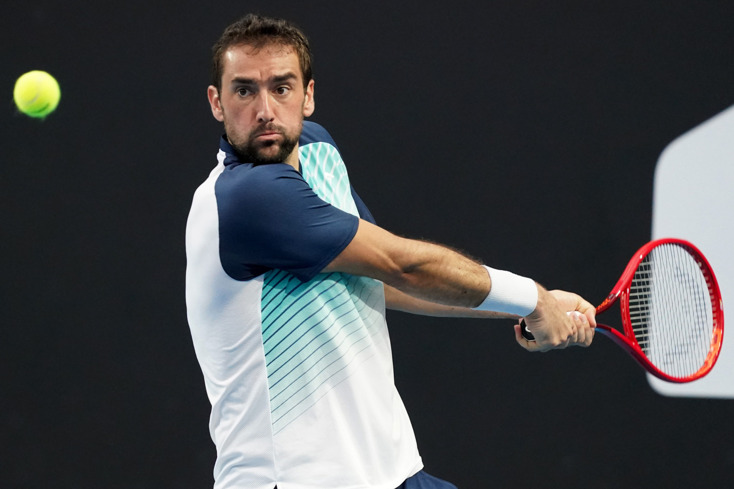 Marin CILIC (CRO) plays Grigor DIMITROV (BUL) on court 3 during Day 1 of the Australian Open at Melbourne Park on Monday, February 8, 2021. MANDATORY PHOTO CREDIT Tennis Australia/ JAY TOWN