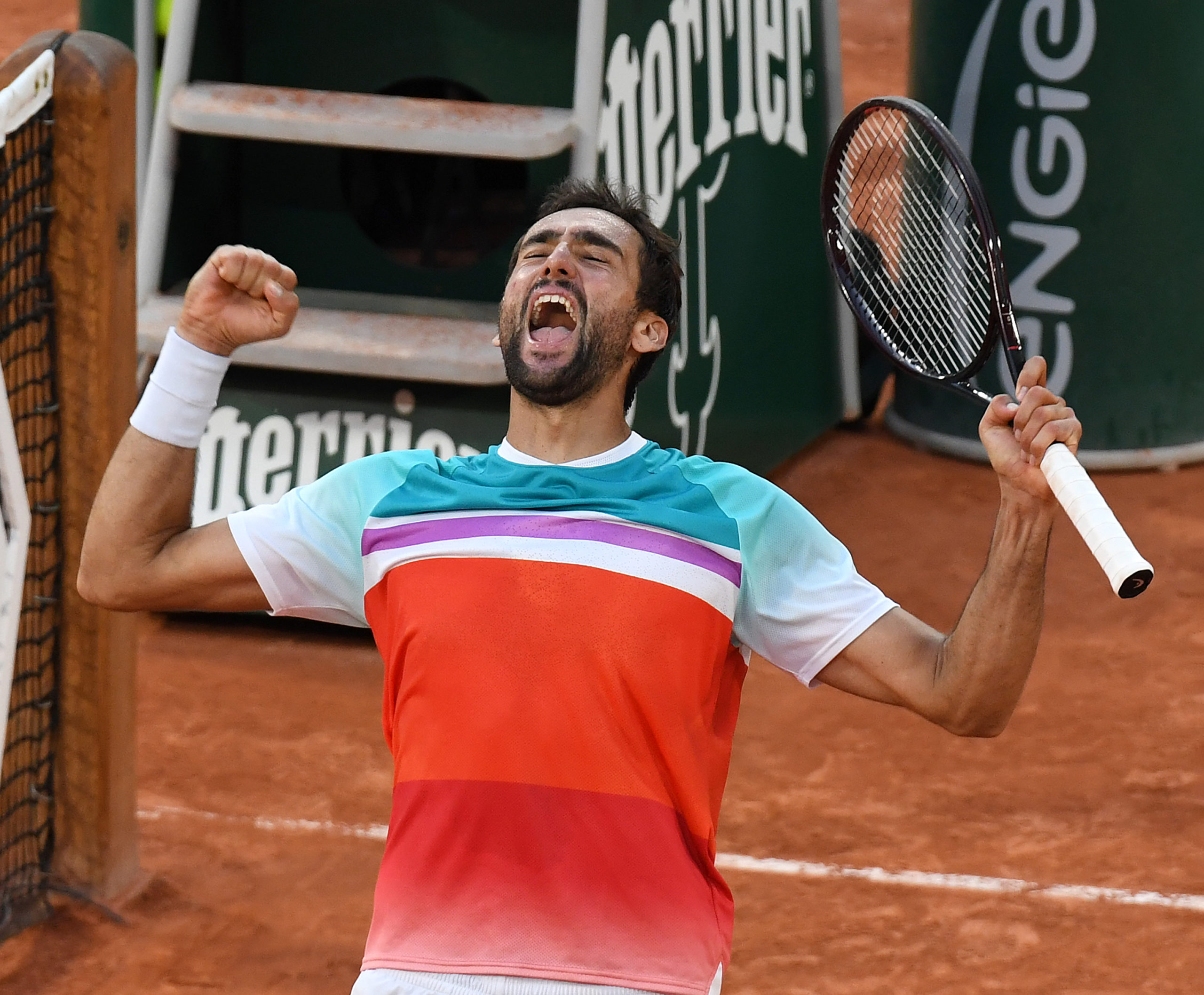 Roland Garros French Open Day 11 01/06/2022 Marin Cilic (CRO) celebrates after he wins quarter final match Photo Roger Parker International Sports Fotos Ltd