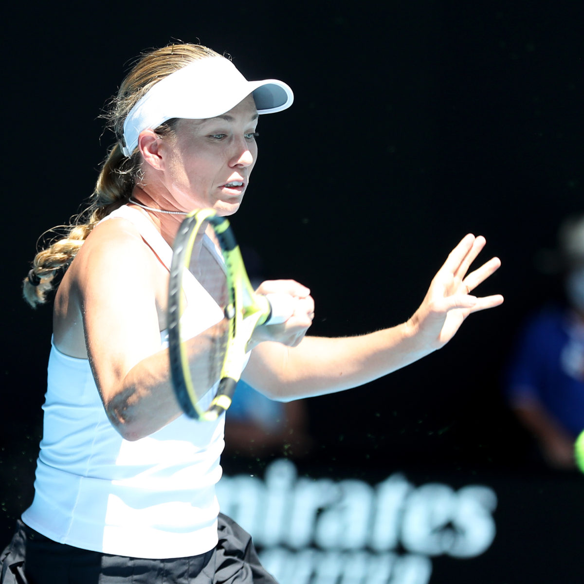 Danielle Collins overcame scorching heat to beat No. 19 seed Elise Mertens 4-6, 6-4, 6-4 at the Australian Open on Monday.