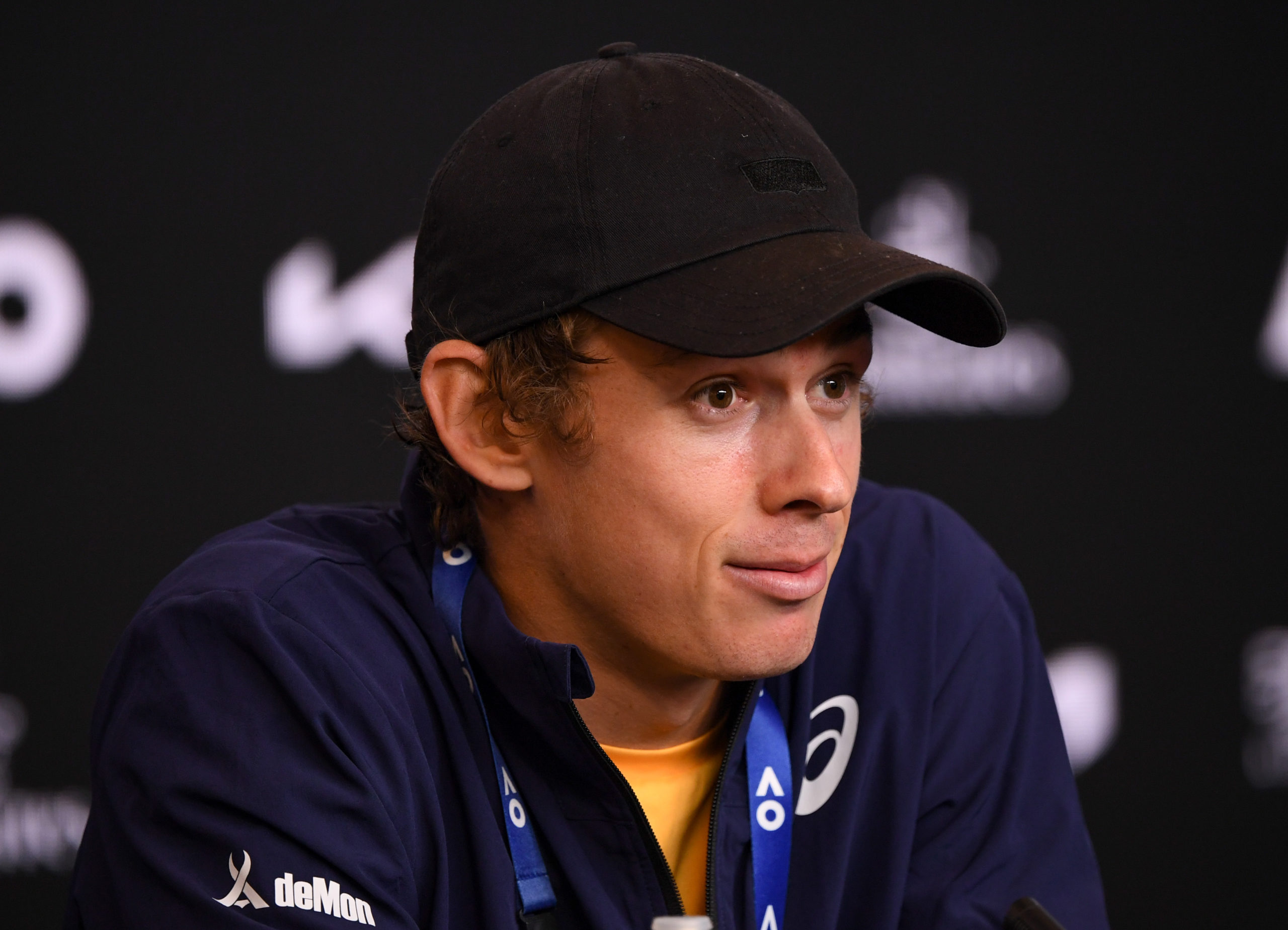 Alex DE MINAUR (AUS) is seen during his press conference after defeating Tennys SANDGREN (USA) on Day 2 of the Australian Open at Melbourne Park on Tuesday, February 9, 2021. MANDATORY PHOTO CREDIT Tennis Australia/ VINCE CALIGIURI