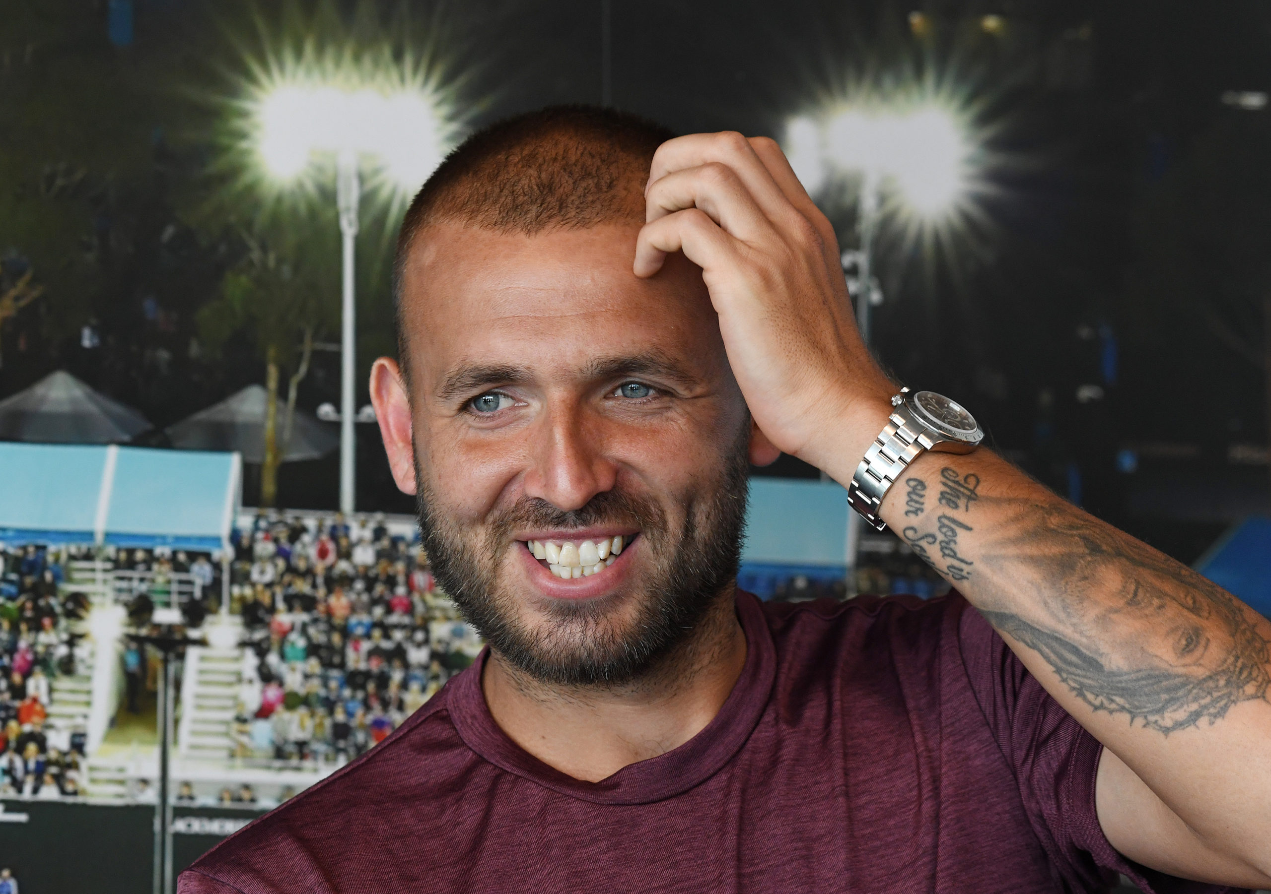 Melbourne Park Australian 18/01/2020 In the spotlight, and with a reformers “Halo†World #33 Dan Evans (GBR) talks to the Media ahead of Australian Open Photo Roger Parker International Sports Fotos Ltd