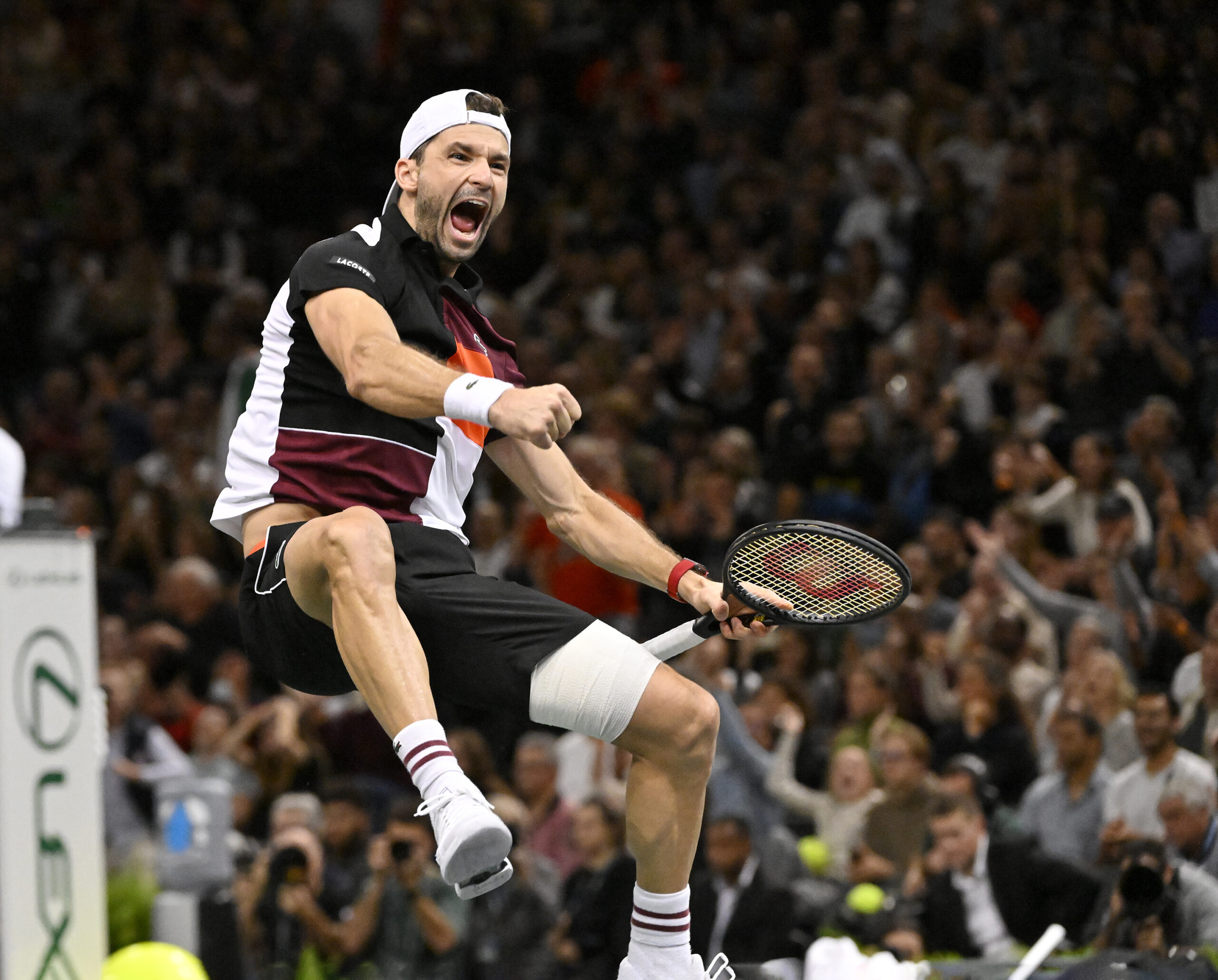 Paris Bercy Rolex Paris Masters 04/11/23 Grigor Dimitrov (BUL) celebrates as he wins semi-final match Photo Roger Parker International Sports Fotos Ltd