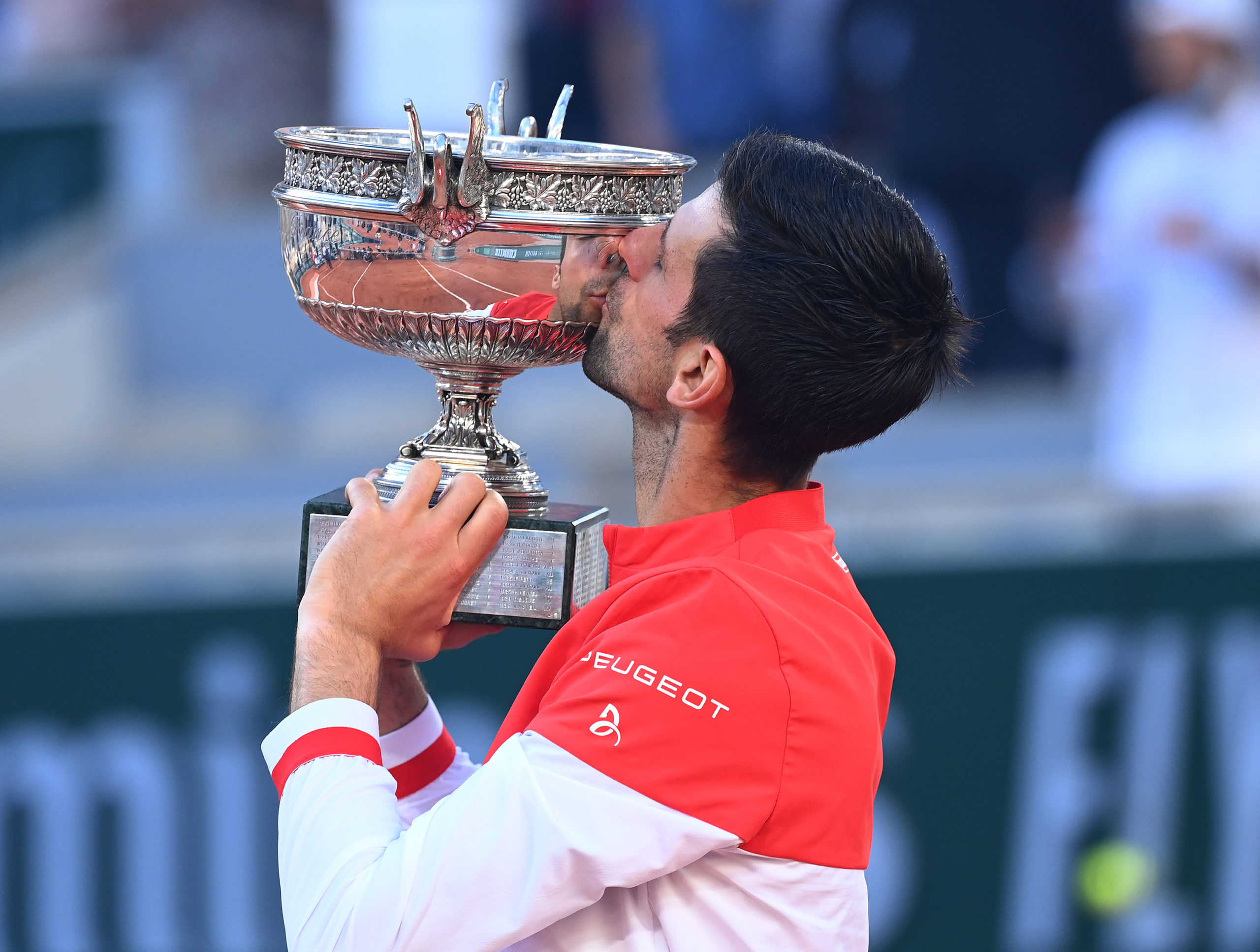 Paris, Roland Garros, French Open Day 15 13/06/2021 Novak Djokovic (SRB with trophy after he wins Mens singles final Roger Parker International Sports Fotos Ltd