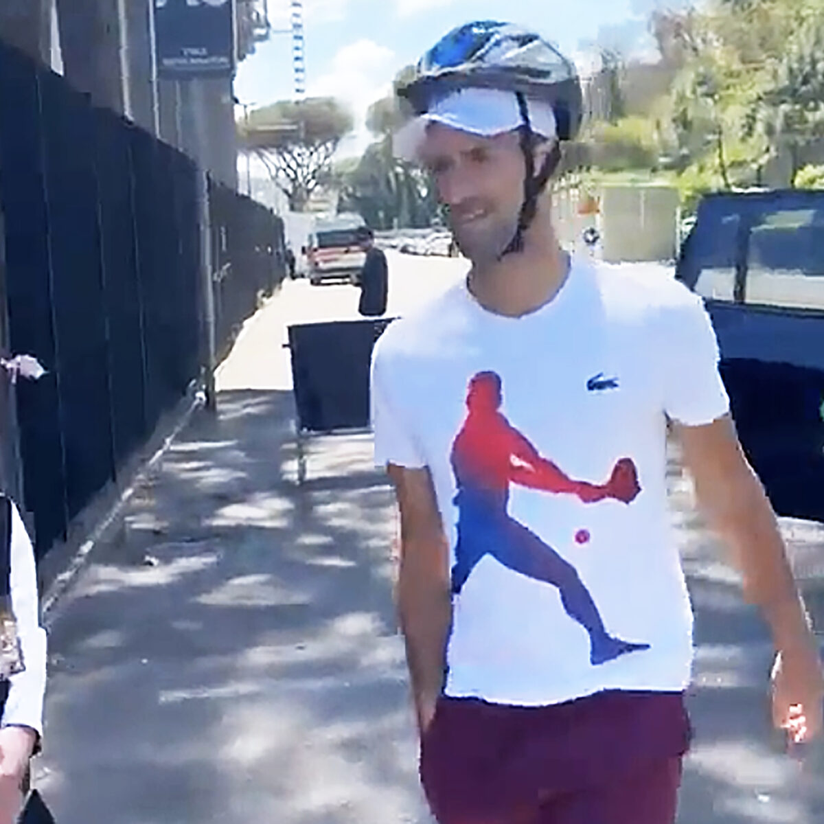 In a gesture of good humour, Djokovic appeared on site on Saturday, wearing a cycling helmet as he signed autographs for fans at the practice court just outside the stadium.