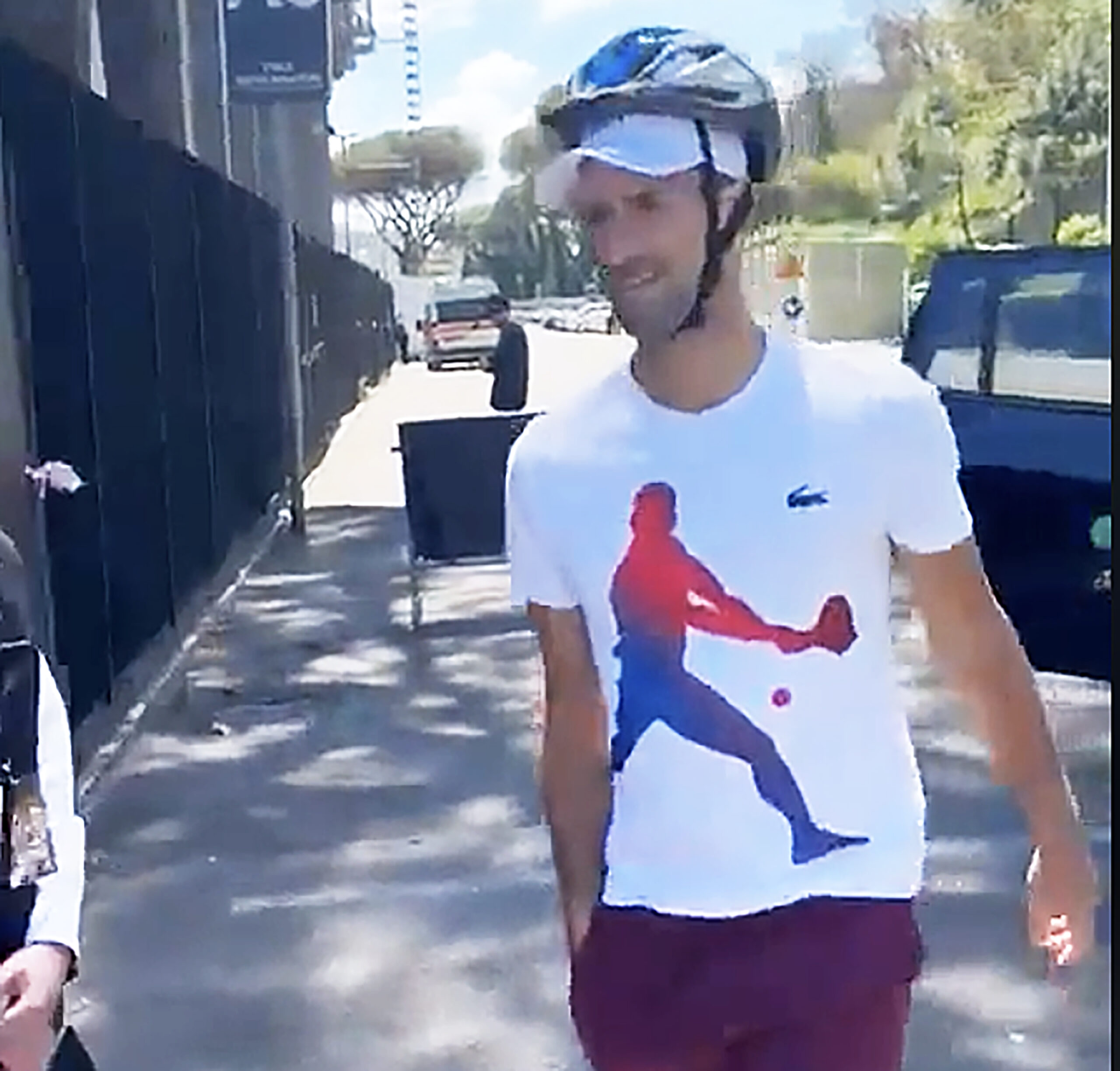 In a gesture of good humour, Djokovic appeared on site on Saturday, wearing a cycling helmet as he signed autographs for fans at the practice court just outside the stadium.