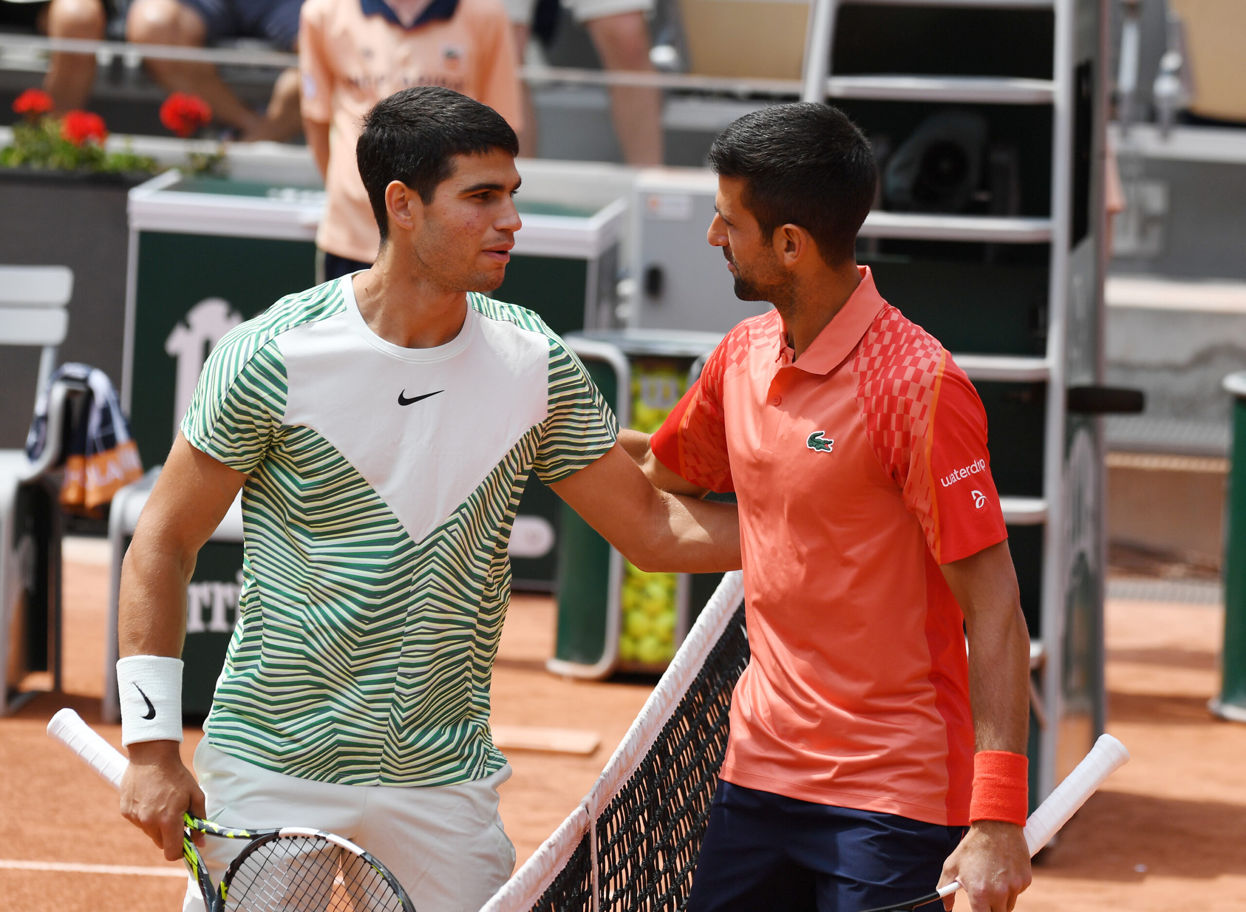Roland Garros Paris French Open 2023 Day 13 09/06/2023 May the best man win - Novak Djokovic (SRB) plays Carlos Alcaraz (ESP) in Men’s Semi-Final Photo Roger Parker International Sports Fotos Ltd