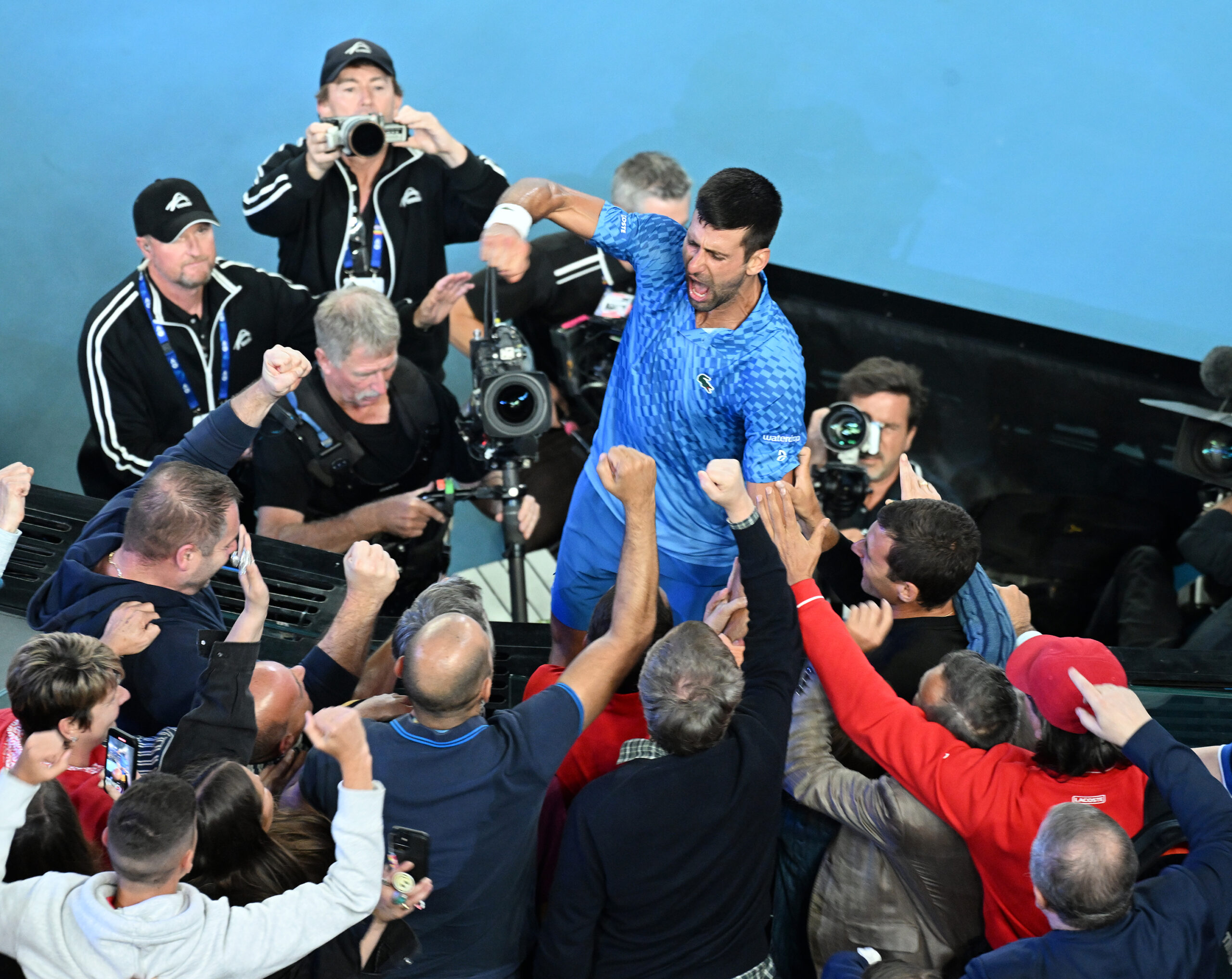 Australian Open 2023 Melbourne Park Day 14 29/01/2023 Novak Djokovic (SRB) celebrates in his player box as he wins Mens singles final Photo Roger Parker International Sports Fotos Ltd