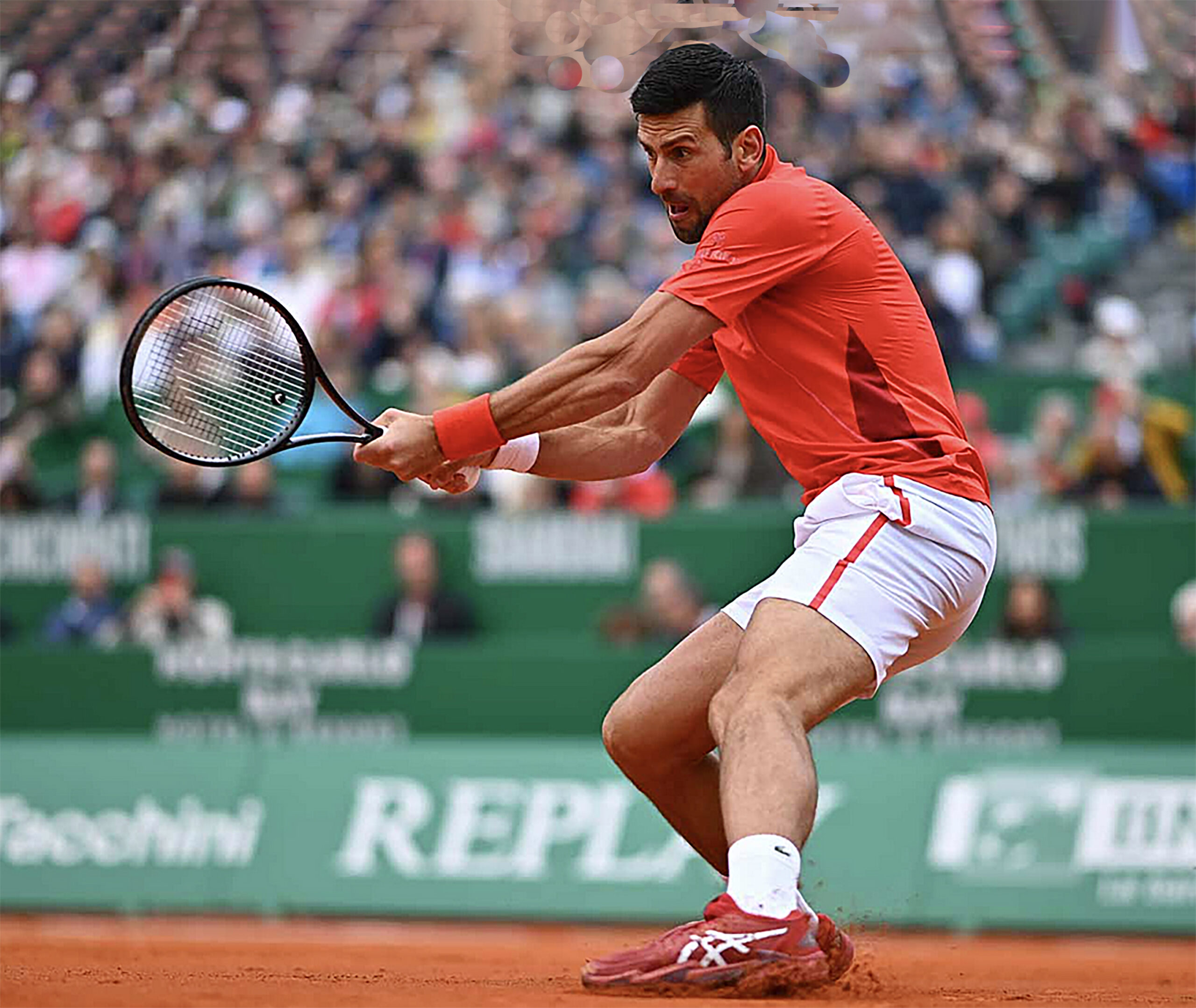 Main photo:- Novak Djokovic winning in Monte Carlo today – by ATPTour.com.