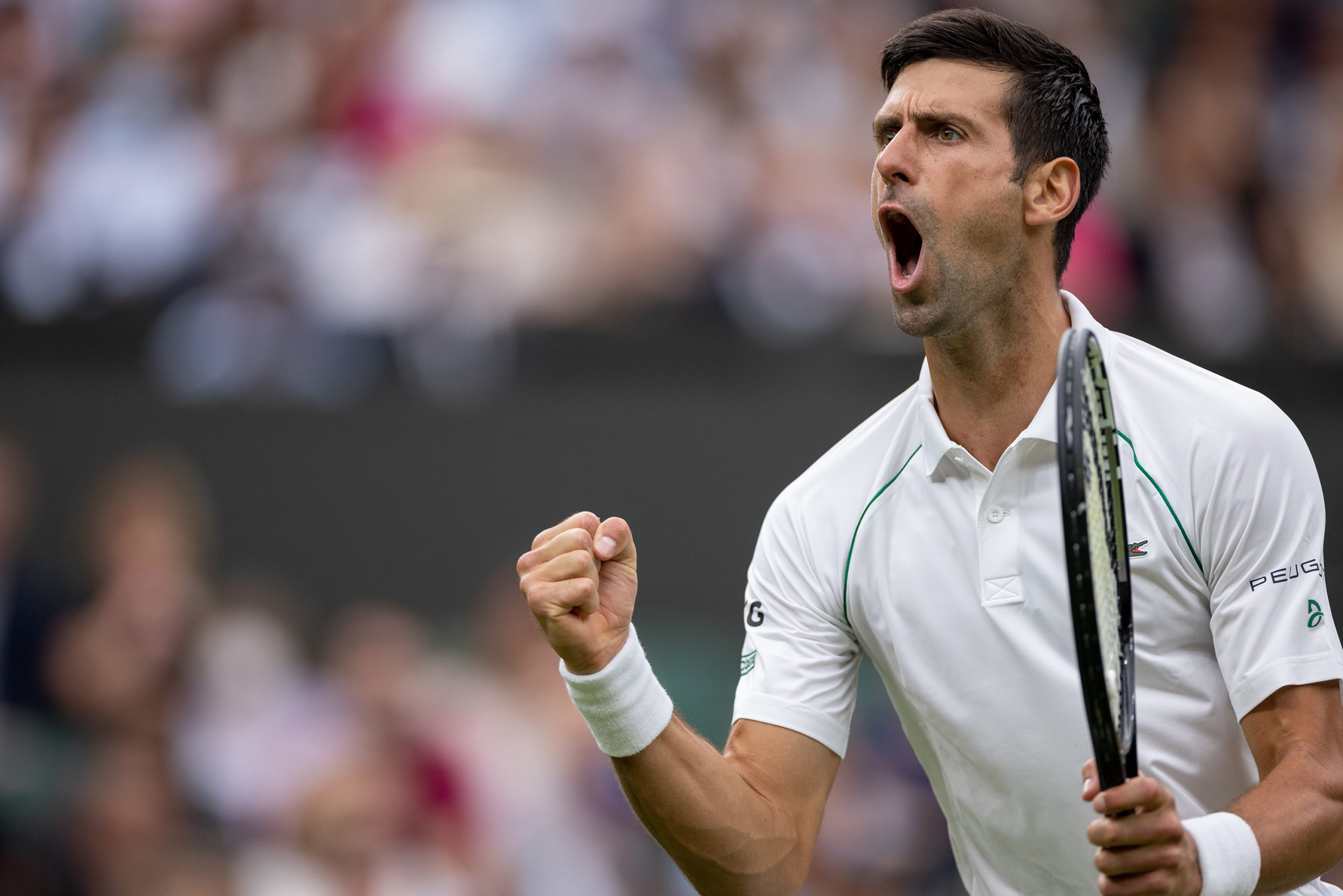 Novak Djokovic (SRB) celebrates an important point playing against Jack Draper (GBR) in the first round of the Gentlemen's Singles on Centre Court at The Championships 2021. Held at The All England Lawn Tennis Club, Wimbledon. Day 1 Monday 28/06/2021. Credit: AELTC/Simon Bruty