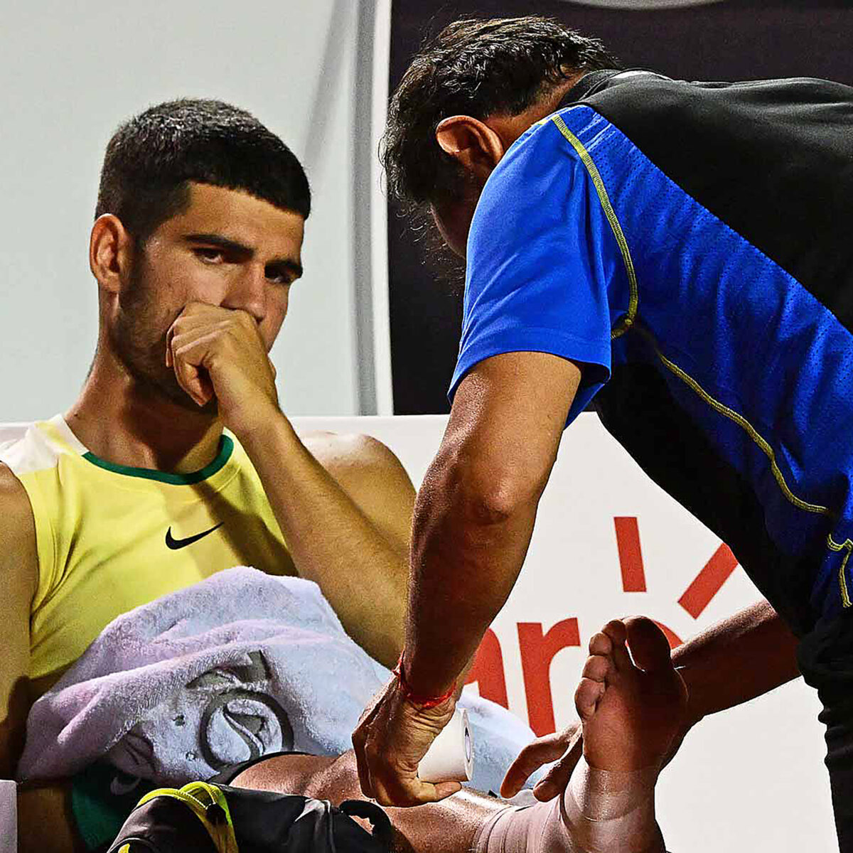 Main photo:- Carlos Alcaraz receives on court treatment before retiring after 10 minutes lay in Rio – by ATPTour.com