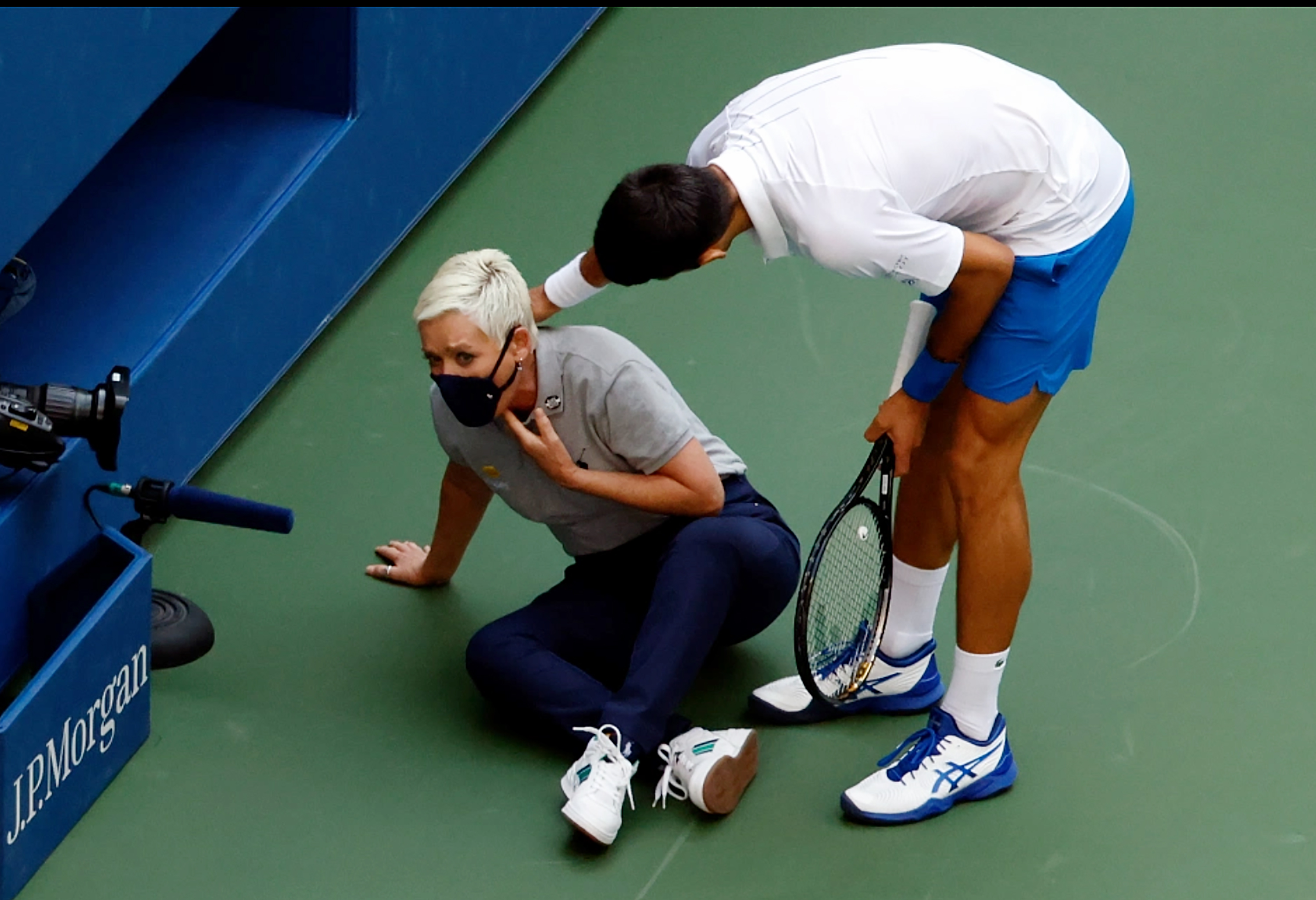 The ballgirl, who was hit in the side of the head as Kato casually lobbed a ball into the backcourt after a point, left the court to an ovation.