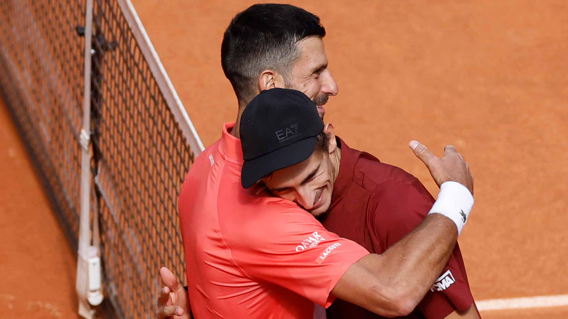 Main photo:- Djokovic sportingly congratulates victor Matteo Arnaldi – by ATPTour.com