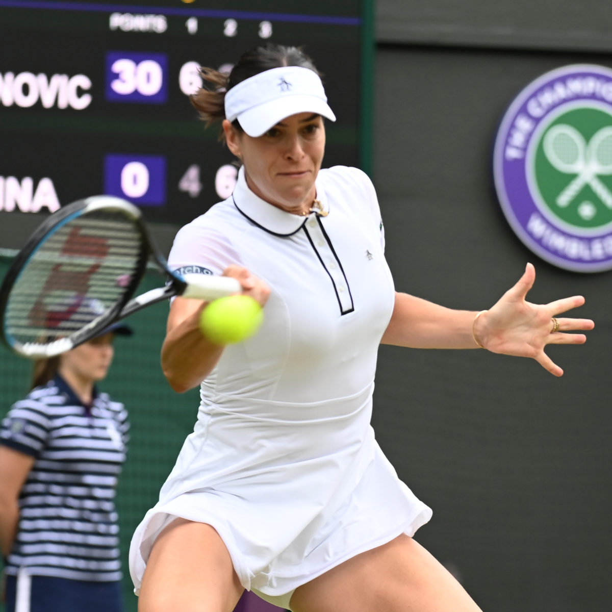 Main photo:- Ajla Tomlanovic losing her quarter final at Wimbledon today – by Roger Parker International Sports Fotos Ltd