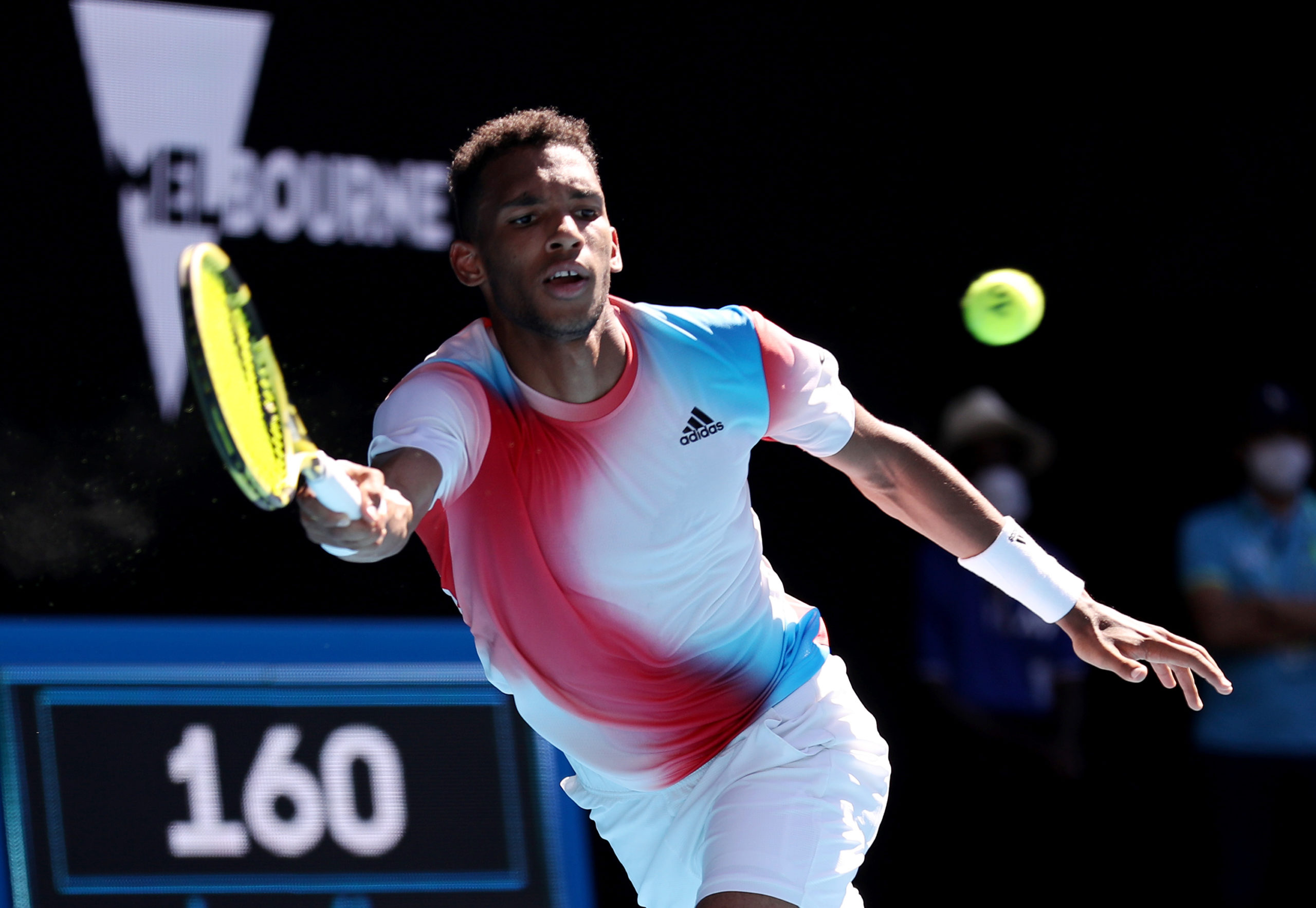Felix Auger Aliassime in fourth round actioon Australian Open Tennis 2022 Melbourne Park, Australia Day 8 Monday 24 January 2022 PHOTO BY KARL WINTER
