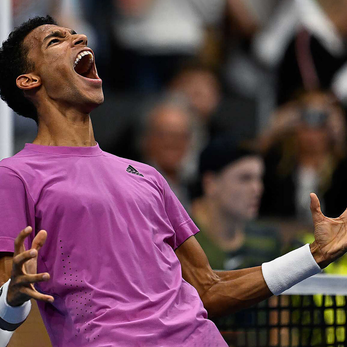 Auger-Aliassime let out a scream as he took victory when Rune sent a return long.
