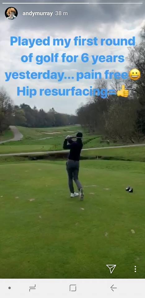 The two-time Wimbledon champion, who had a hip resurfacing operation in January in a last ditch bid to overcome injury posted an image on his instagram account yesterday, with the encouraging words: Played my first round of golf for 6 years yesterday … pain free. Hip resurfacing = (thumbs up)’.