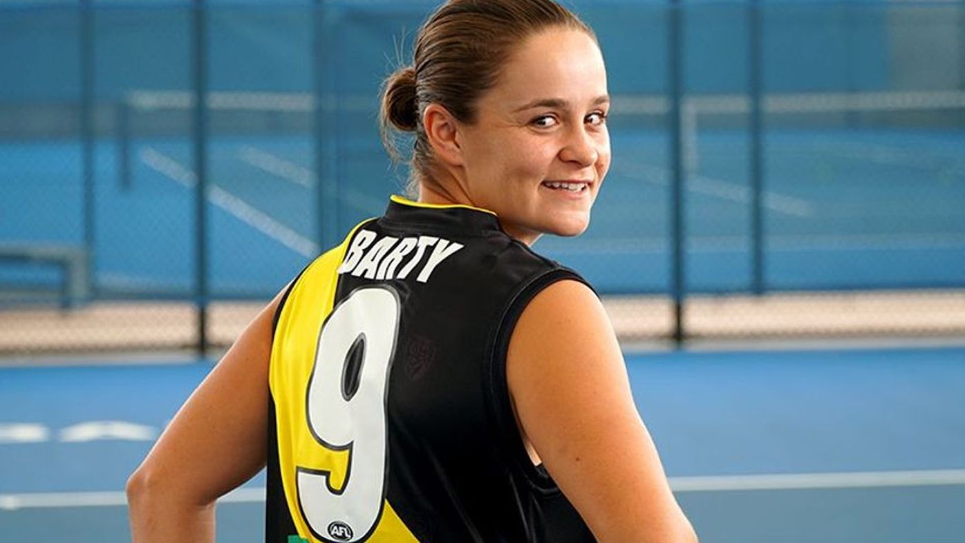 Social media was awash with congratulations for world No. 1 Ash Barty after she presented the AFL championship trophy to the Richmond Tigers in Brisbane on Saturday night.