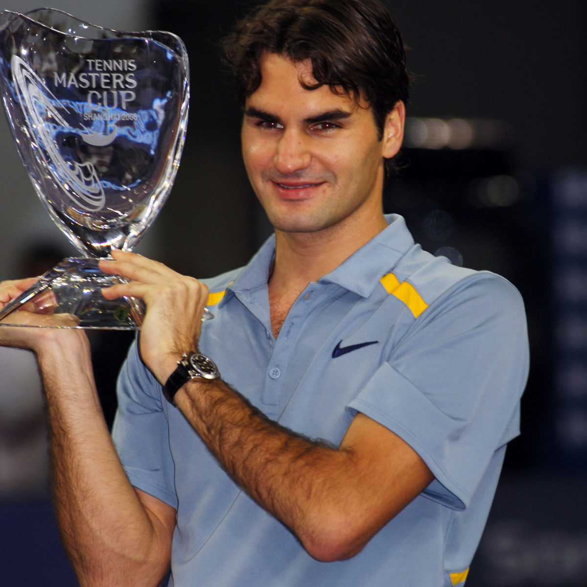 Main photo:- Roger Federer with 2006 ATP Tennis Masters winners trophy Qi Zhong Tennis Centre Shanghai by Roger Parker International Sports Fotos Ltd