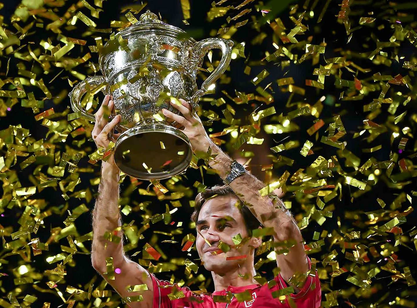 Main photo:-Roger Federer winning his home title in Basel for the 10th time in 2019