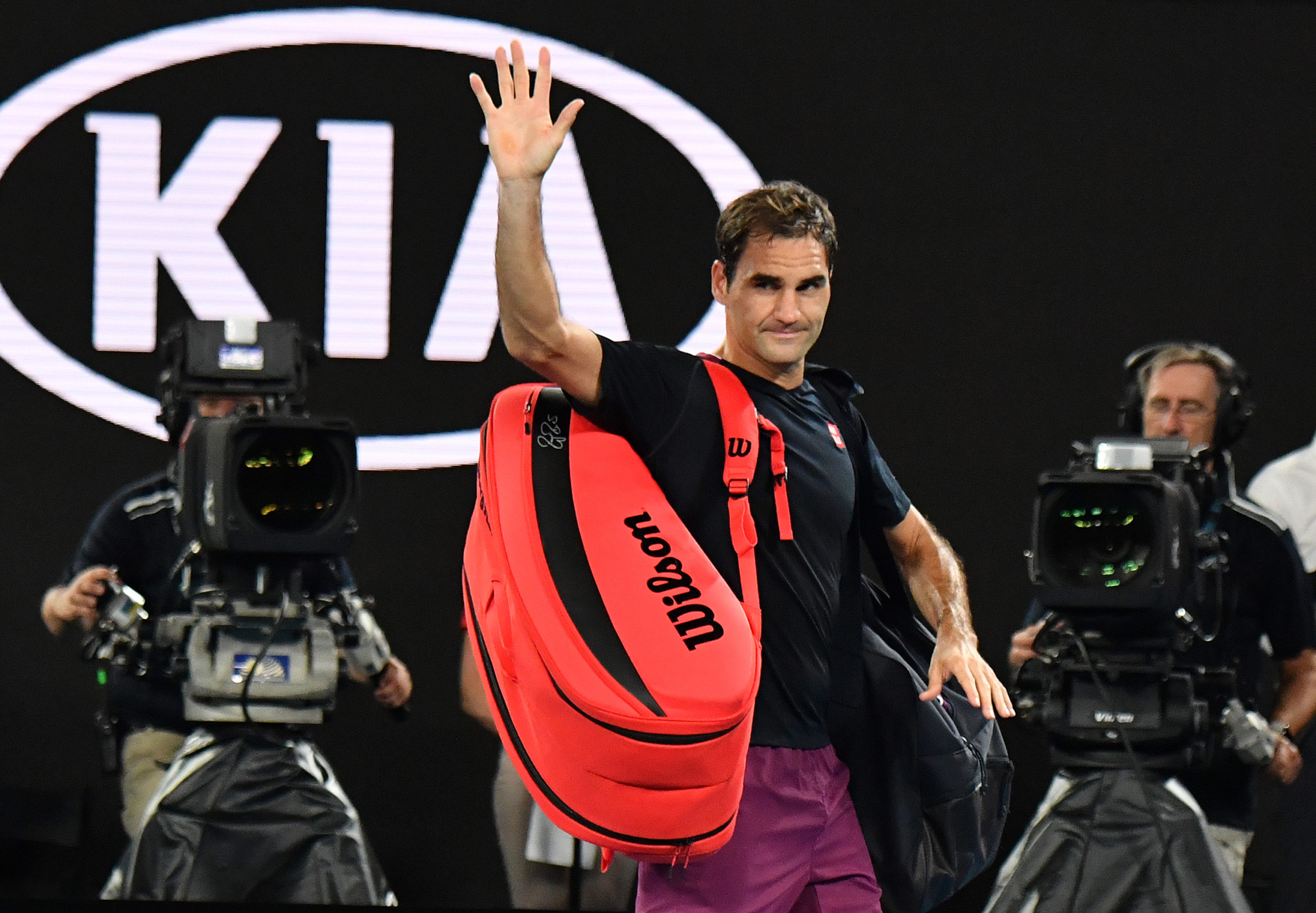 Melbourne Park Australian Open Day 11 30/01/20 Novak Djokovic (SRB) beats Roger Federer (SUI) in semi-final who waves to fans Photo Roger Parker International Sports Fotos Ltd