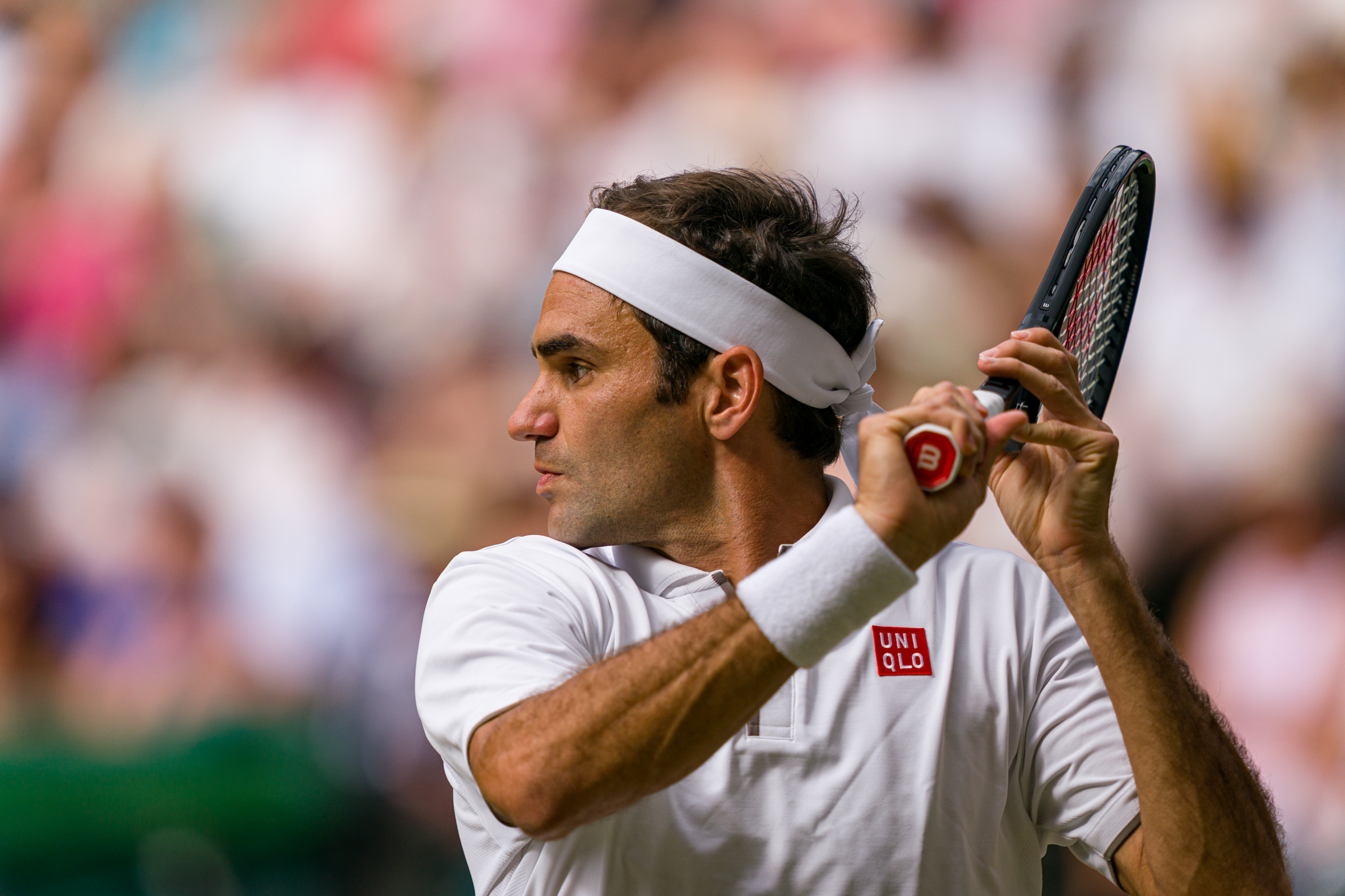 Wimbldon, Great Britain - July 12: Roger Federer of Switzerland at the Gentlemen's Singles Semifinal Match of 2019 Wimbldon Tennis Championships Day 11 on 12 July 2019 at The All England Lawn Tennis Club (AELTC), Great Britain. (©Andy Cheung/ArcK Images/arckimages.com/UK Tennis Magazine/International Sports Fotos)