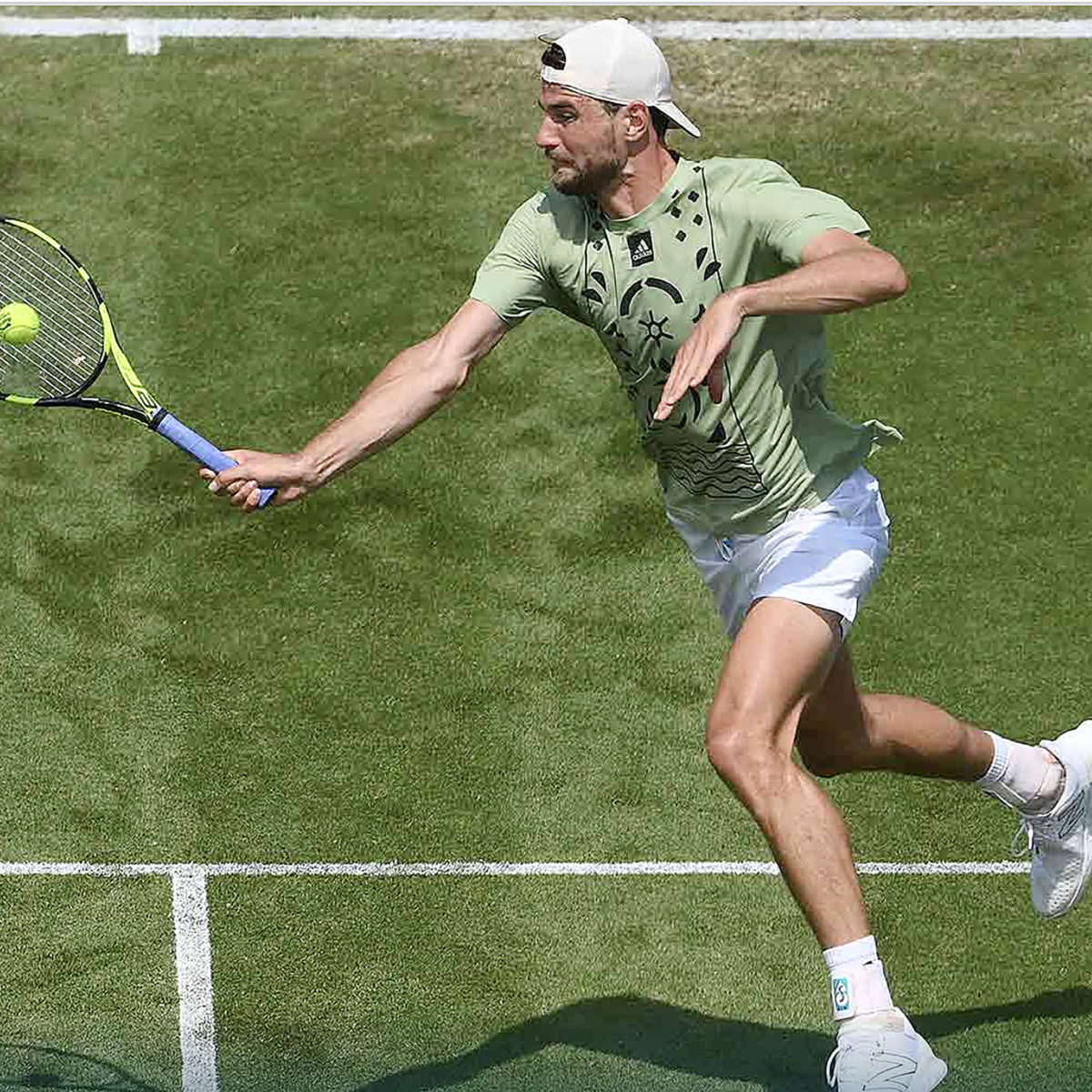 The US-based No. 60 added top-seeded Brit Cam Norrie to this week’s victim’s list on the English South coast grass with a 7-5, 7-5 win.