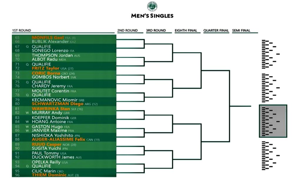 For Thiem its tougher – he has Felix Auger-Aliassime, Gael Monfils, and Diego Schwartzman in his section. He opens against big-hitting Marin Cilic.