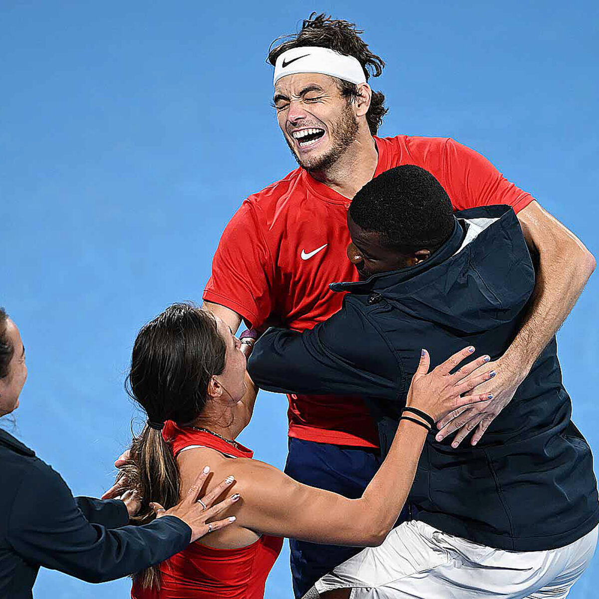 Main photo:- Taylor Fritz leads US celebrations – by Pete Staples/Tennis Australia