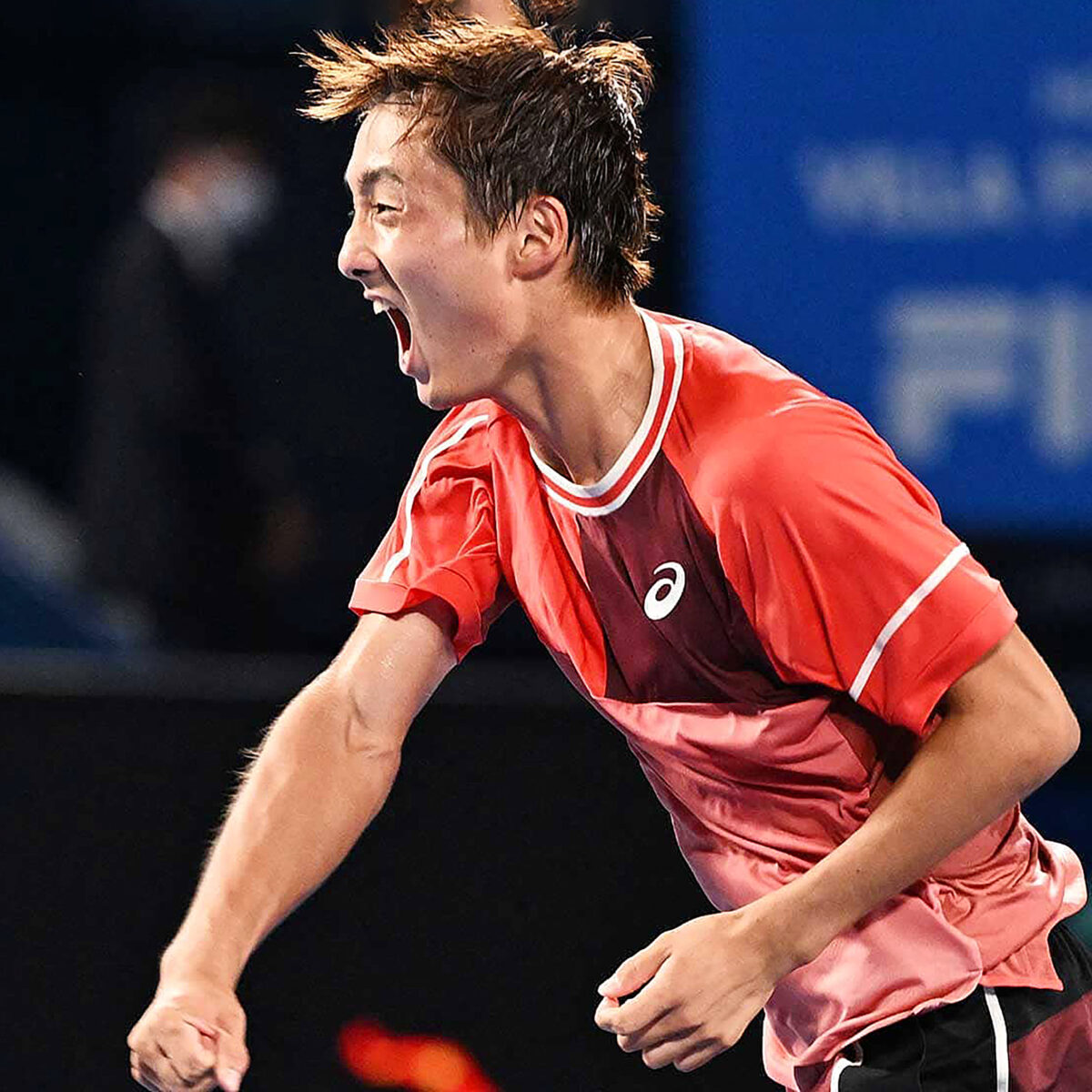 Main photo:- Wild Car Shintaro Mochizuki celebrates in Tokyo – by ATPTour.com