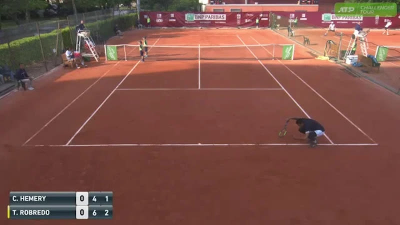 At the ATP Challenger in Bordeaux in France, Tommy Robredo and Calvin Hemery played a rally that ended after Robredo challenged a ball that landed near his baseline.