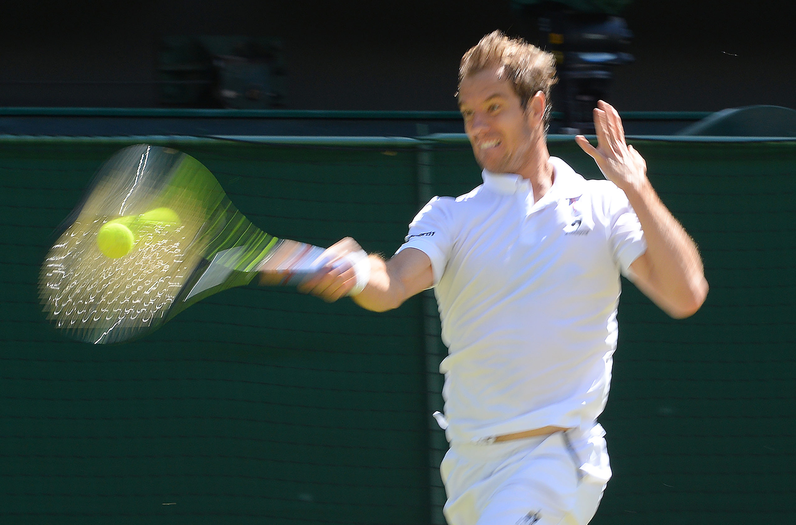 The Championships Wimbledon 2015 Day 11 10/07/2015 Richard Gasquet (FRA) is given the run around by Novak Djokovic as he loses semi final match Photo Roger Parker International Sports Fotos Ltd