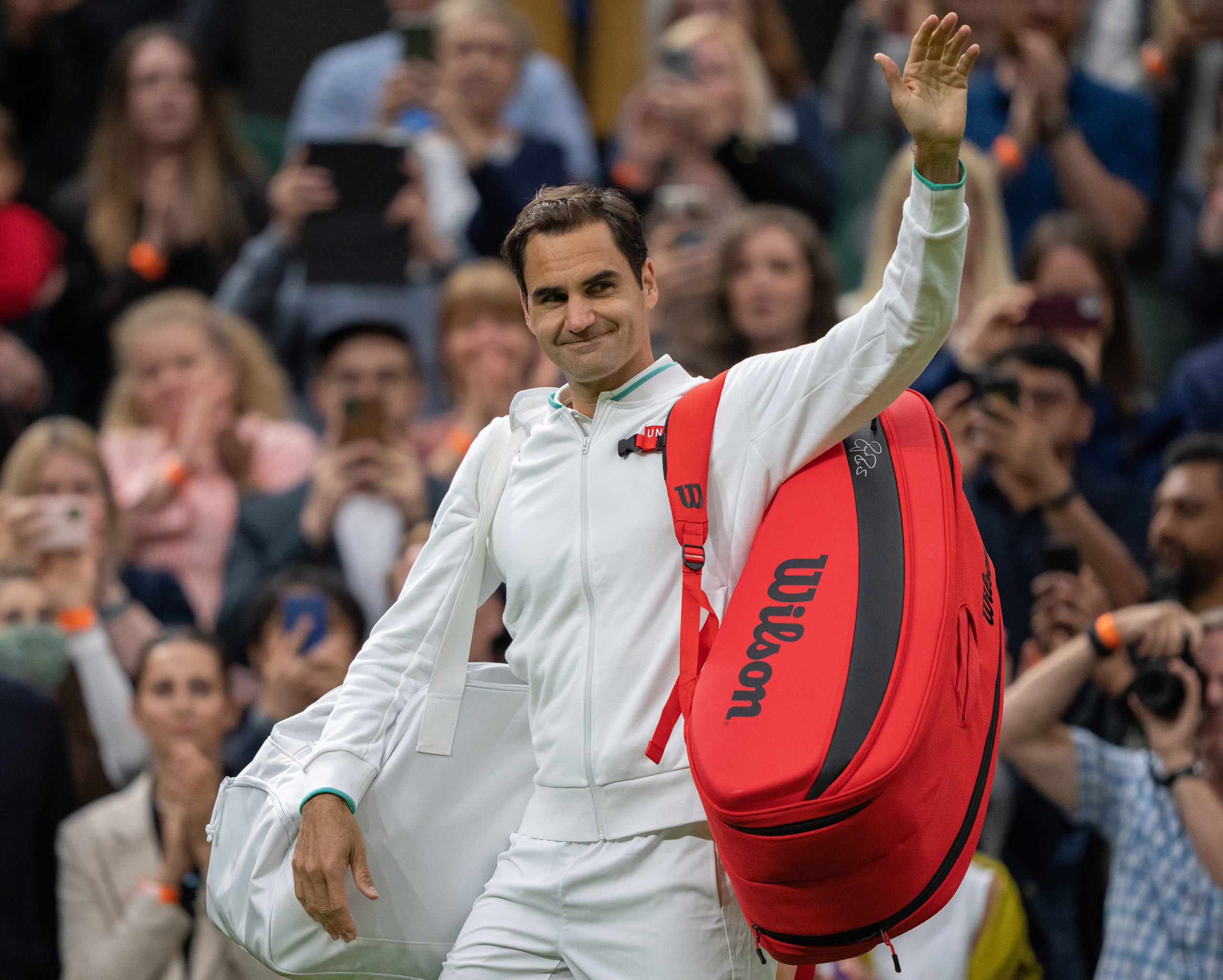 Roger Federer (SUI) smiles after winning against Adrian Mannarino (FRA) at The Championships 2021. Held at The All England Lawn Tennis Club, Wimbledon. Day 2 Tuesday 29/06/2021. Credit: AELTC/Jed Leicester