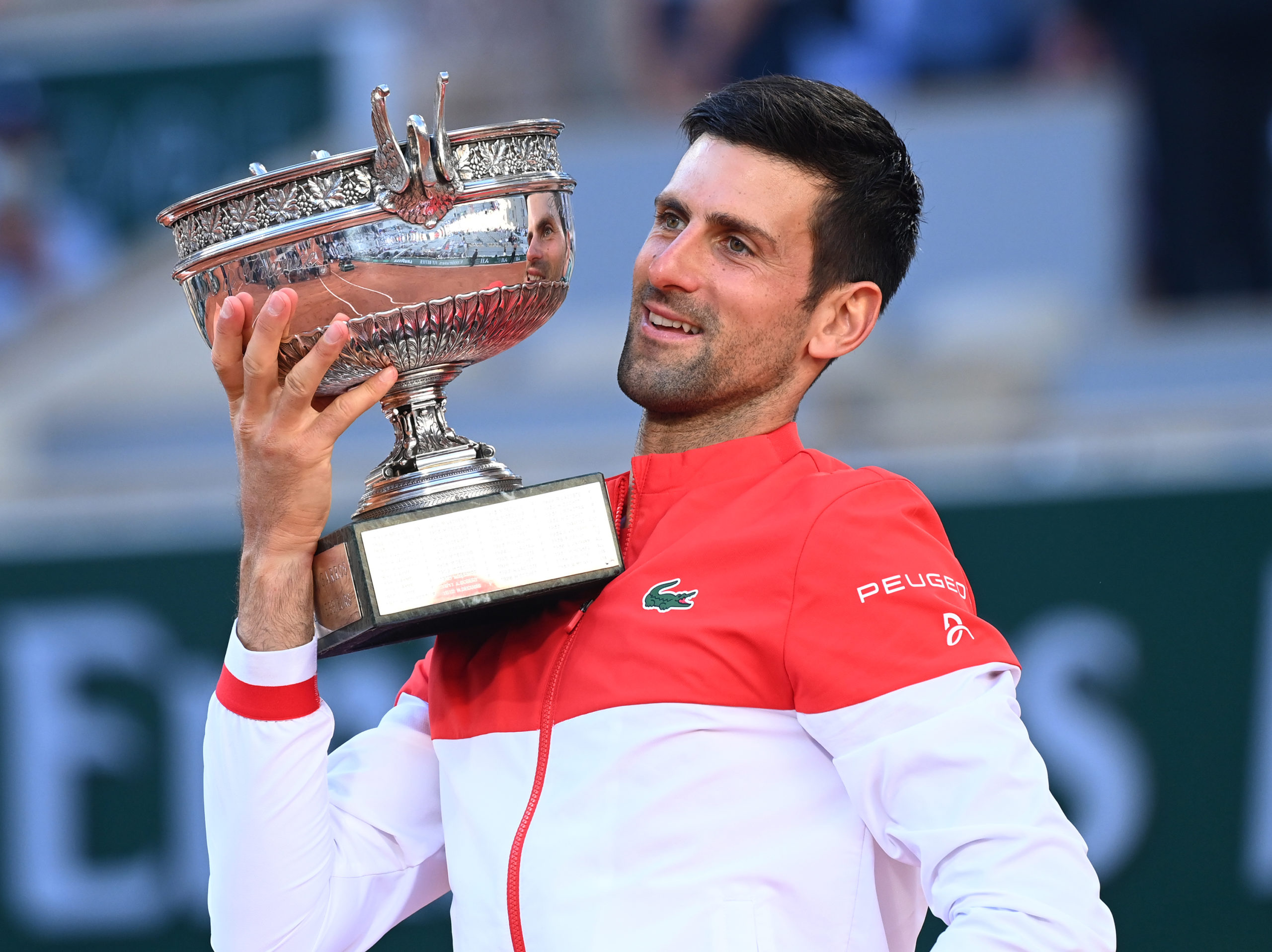 Paris, Roland Garros, French Open Day 15 13/06/2021 Novak Djokovic (SRB with trophy after he wins Mens singles final Roger Parker International Sports Fotos Ltd