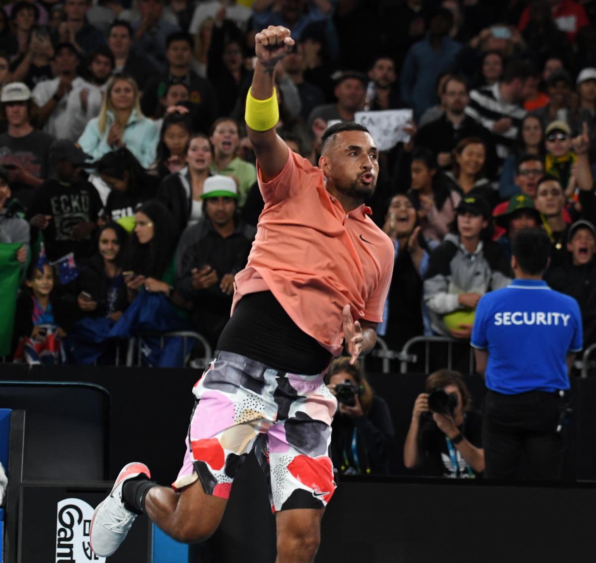 Melbourne Park Australian Open Day 4 23/01/20 Nick Kyrgios (AUS) celebrates as he wins thrilling wins second round match in four sets Photo Roger Parker International Sports Fotos Ltd